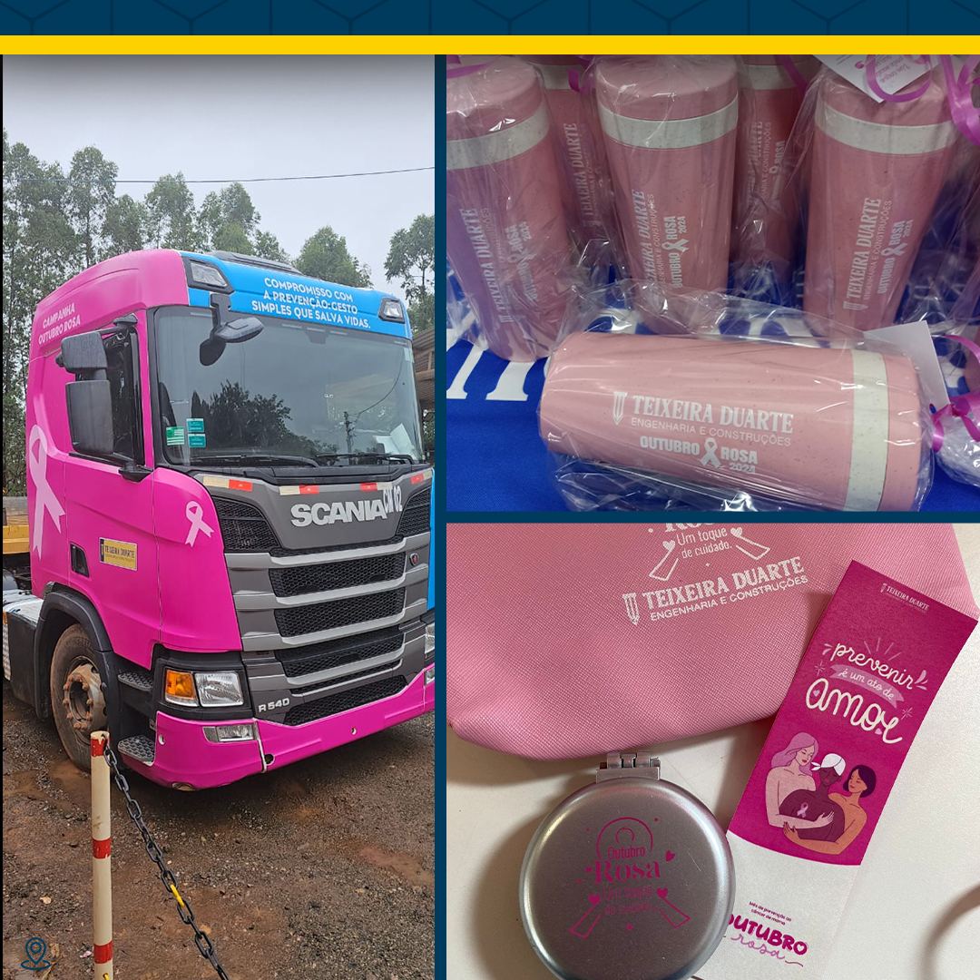 No mês de Outubro Rosa, as unidades de negócios da Teixeira Duarte se uniram em uma campanha de conscientização e autocuidado no Outubro Rosa, promovendo acolhimento e cuidado com a saúde da mulher. As ações incluíram palestras informativas, entrega de brindes e momentos de autocuidado, reforçando a importância do diagnóstico precoce e do bem-estar.