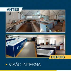 • Aplicação de revestimento cerâmico interno e acabamento para as bordas e quinas nos tanques para os corpos de prova, o que tornou a manutenção e limpeza mais ágil e eficiente;