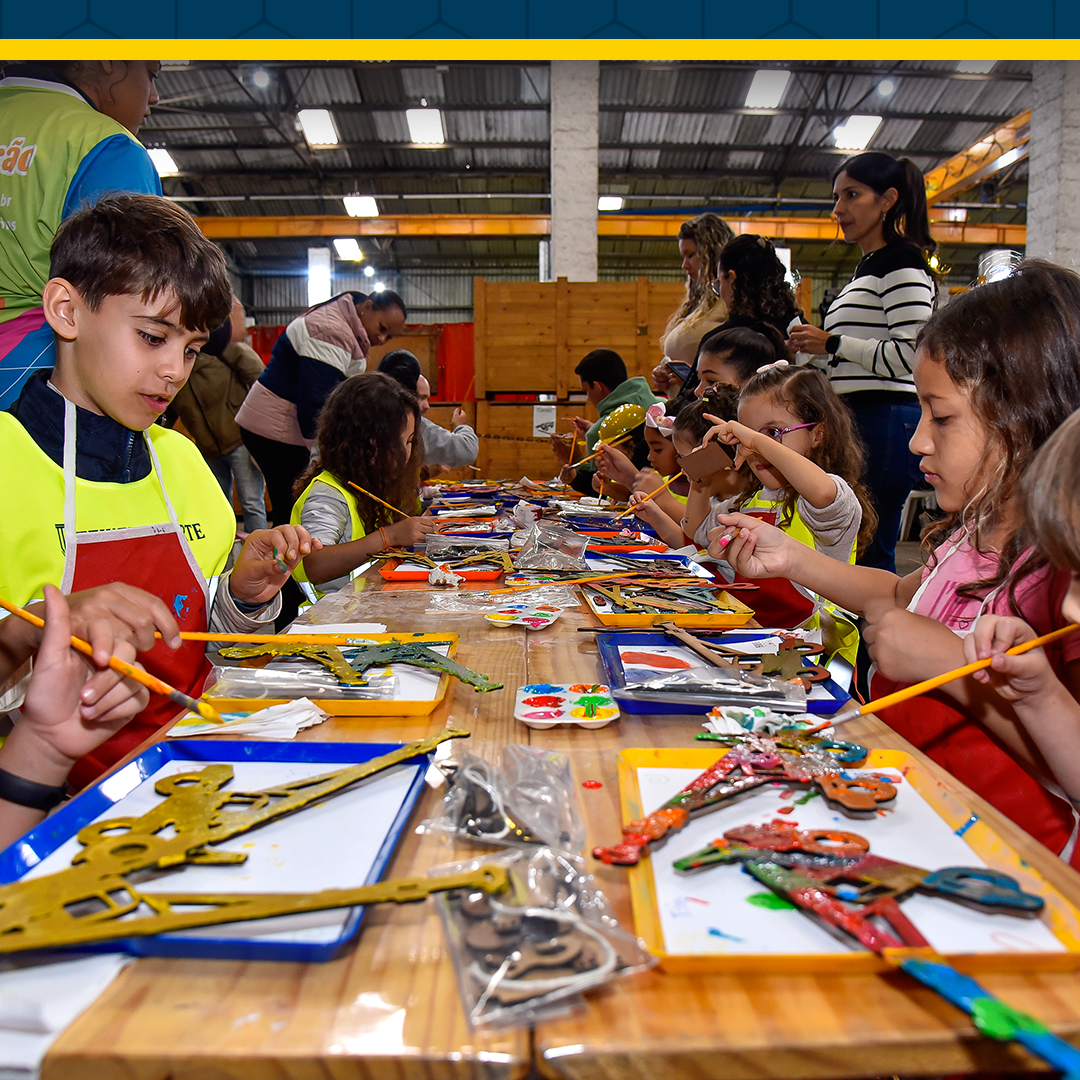 Para as crianças, o dia foi ainda mais especial e contou com com uma oficina criativa de construção e pintura de um guindaste, proporcionando momentos de diversão e aprendizado.