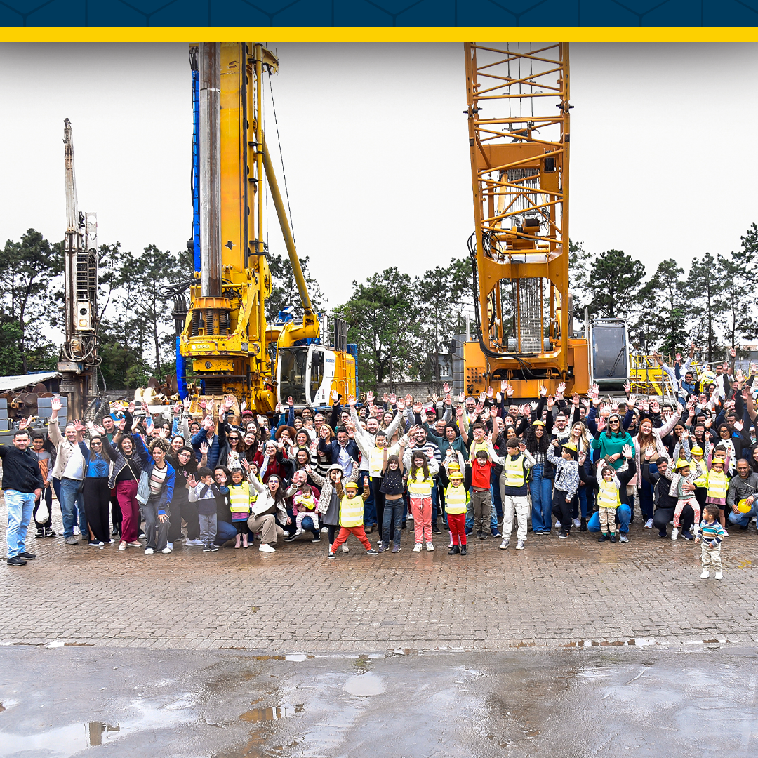 O domingo começou com um delicioso café da manhã, proporcionando um momento acolhedor para todos os presentes. Em seguida, iniciaram um tour pela unidade, que incluiu visitas às áreas de elétrica, caldeiraria, mecânica e almoxarifado. A caminhada se estendeu para o exterior, onde os convidados puderam conhecer de perto parte do portfólio de maquinário da empresa, que conta com mais de 200 milhões de reais em ativos. Um dos pontos altos foi a simulação ao vivo da Perfuratriz de Esteiras BAUER BG 39 e a experiência única de entrar na cabine do Guindaste de Esteiras LIEBHERR HS 895 HD, com capacidade de carga de até 200 toneladas, uma oportunidade inesquecível registrada em fotos.