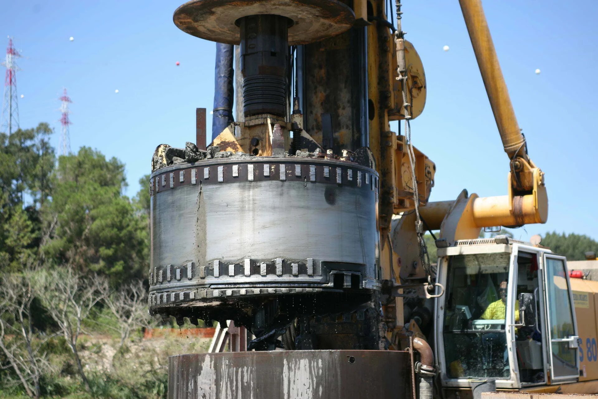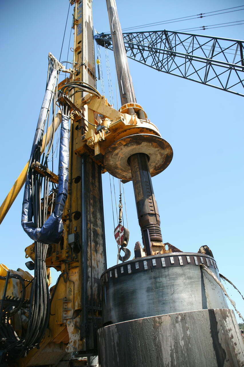 Execução de estacas escavadas de 2.500 mm de diâmetro, num total de 100 m.