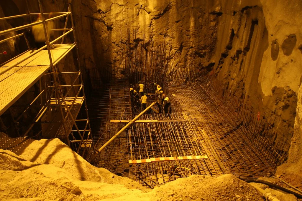 Escavação de caverna subterrânea (central) para instalação do grupo energético, com 68 m de altura, 66 m de comprimentos e 27 m de largura, correspondendo a uma escavação de 93.900 m3;