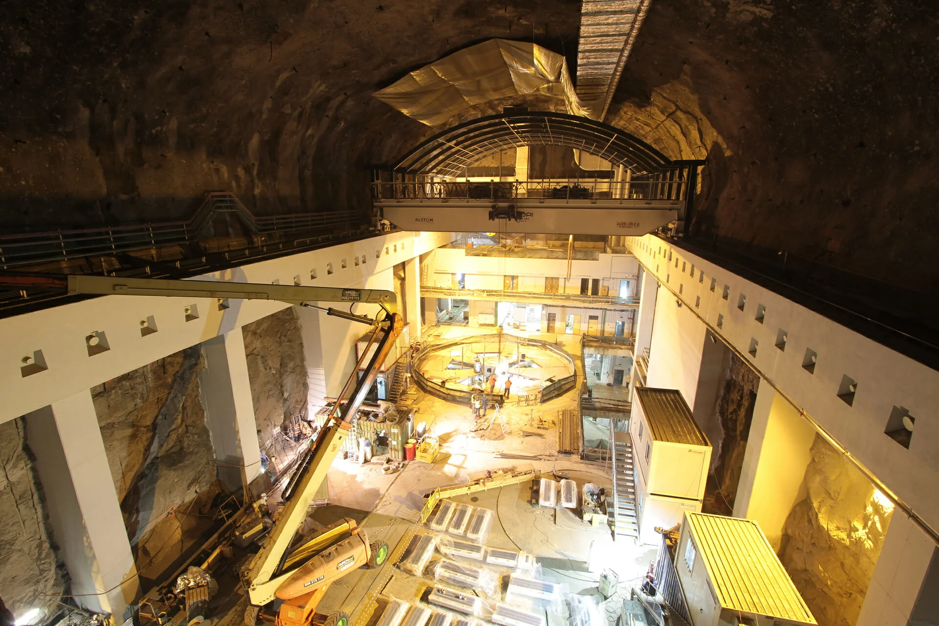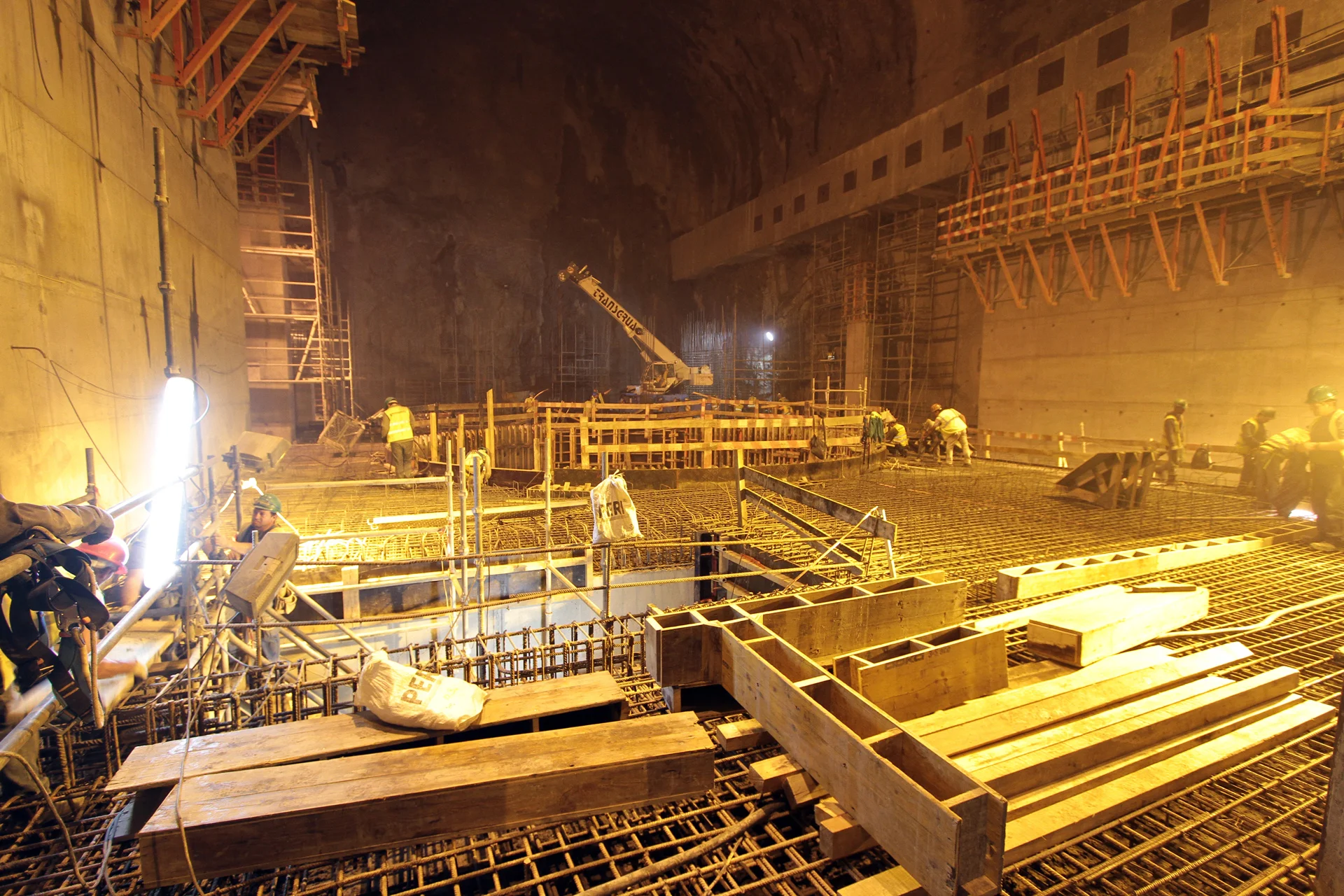 Escavação de caverna subterrânea (central) para instalação do grupo energético, com 68 m de altura, 66 m de comprimentos e 27 m de largura, correspondendo a uma escavação de 93.900 m3;