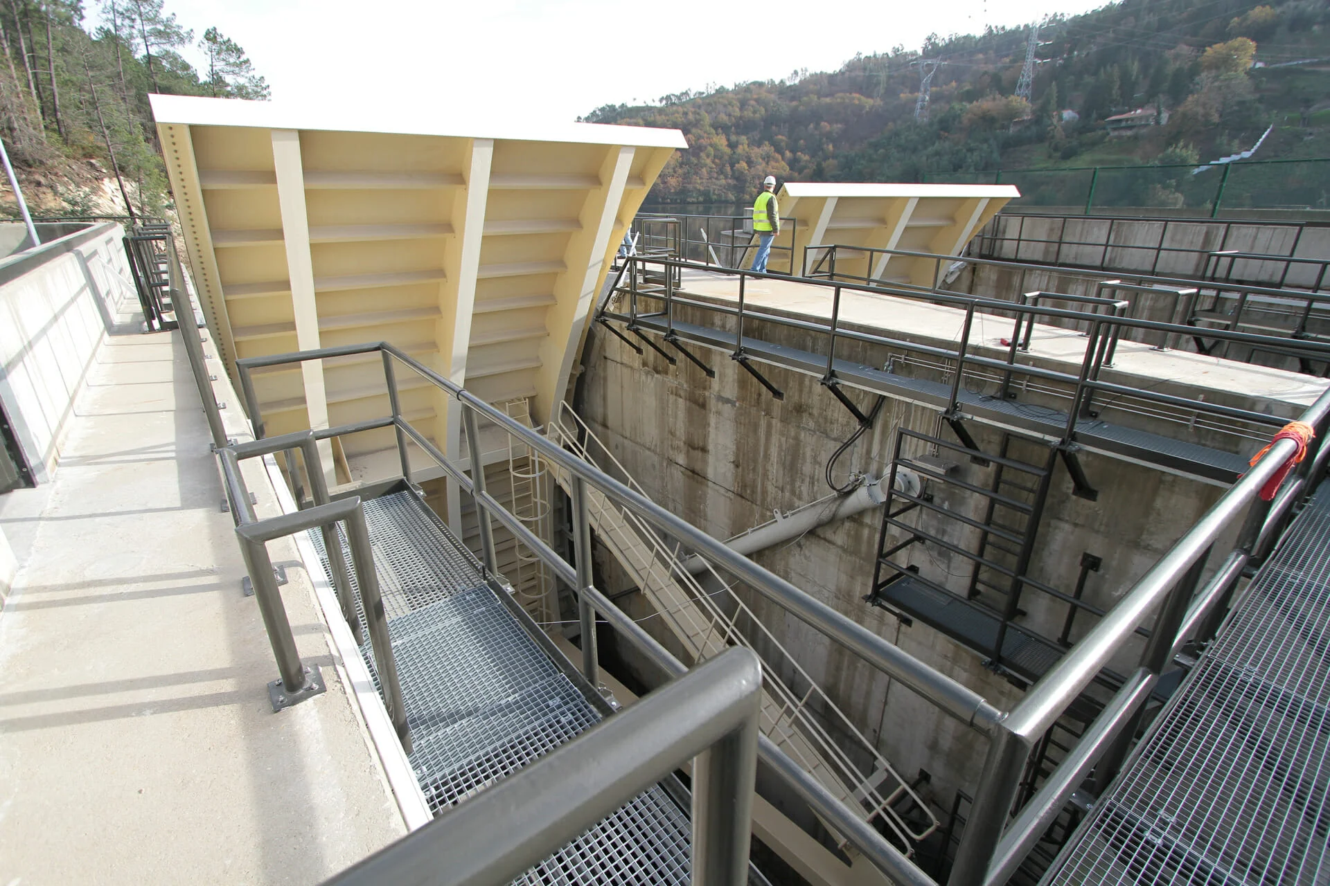 Restituição no reservatório de Caniçada, constituído por bocal com septos e estruturas para montagem e manobra dos equipamentos hidromecânicos;