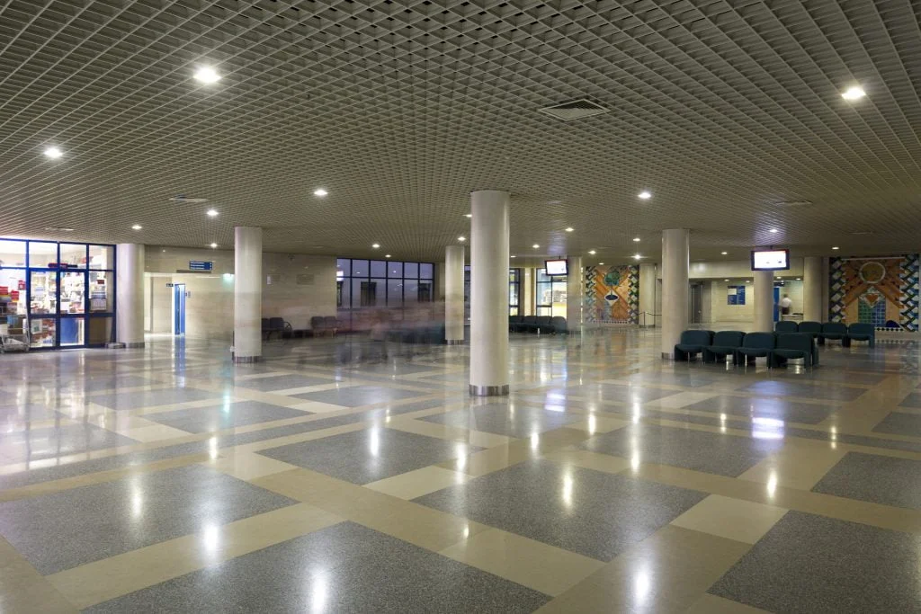 Cozinha (2.200 refeições diárias), Lavandaria (450 kg roupa/hora)