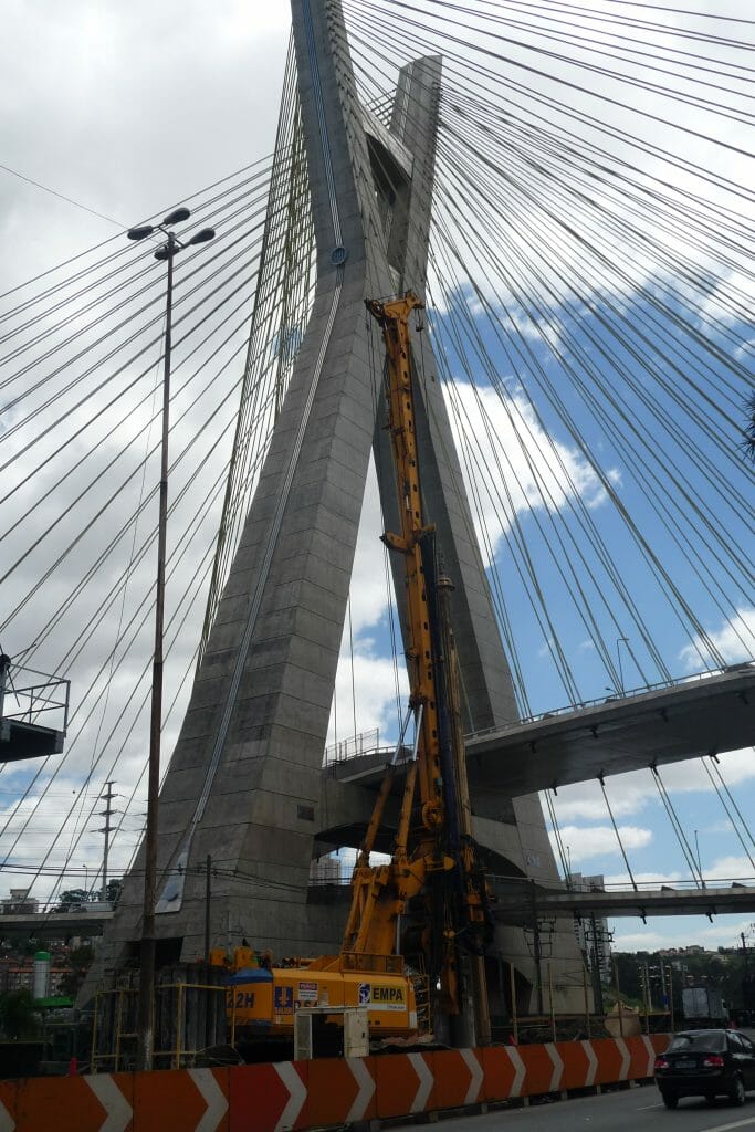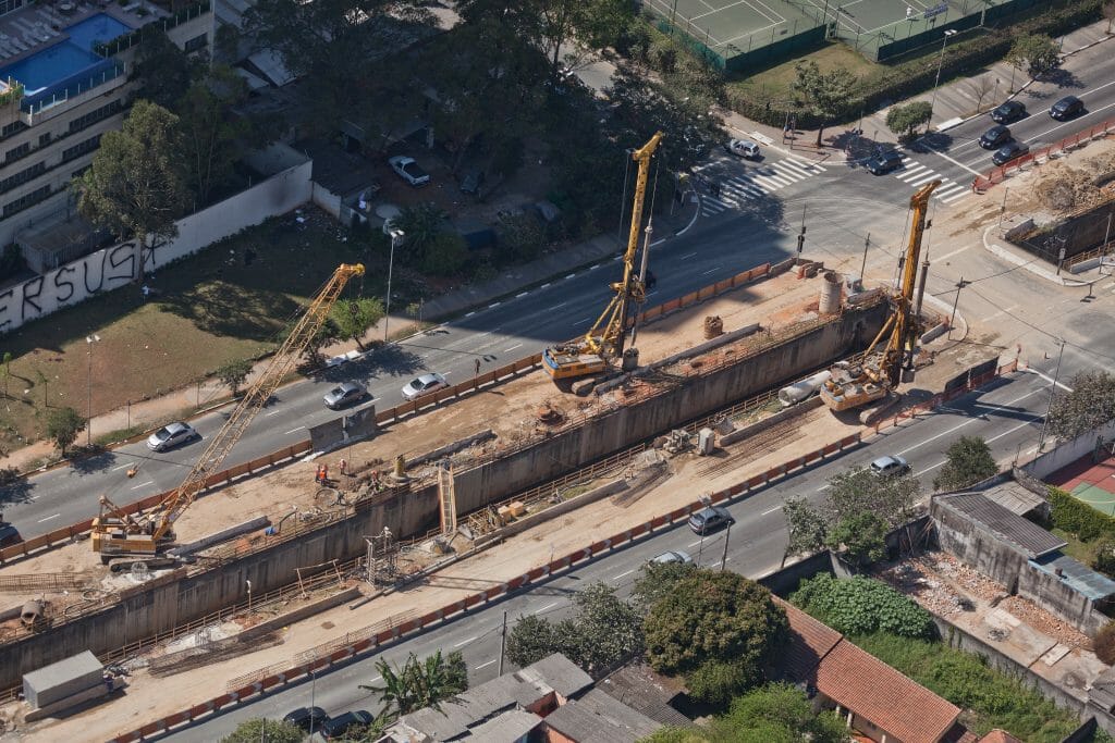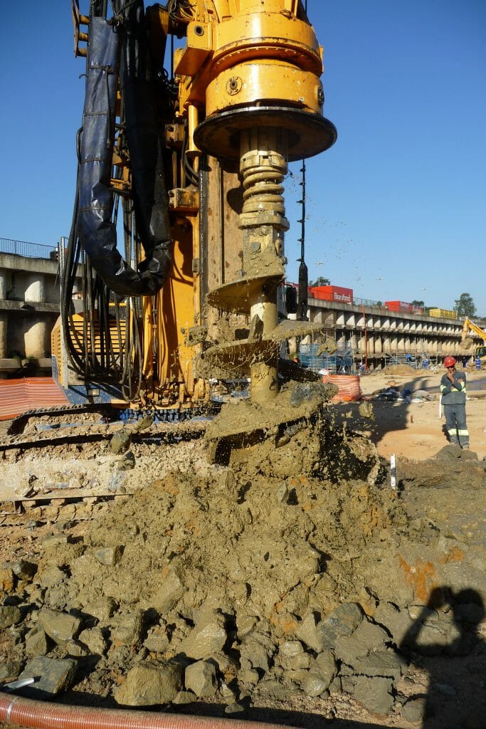 Execução de estacas de fundação profunda de grande diâmetro adequando a tecnologia de perfuração à heterogeneidade dos terrenos atravessados, incluindo rachão nos 8 metros superficiais (cravando para o efeito camisa metálica) e substrato rochoso e compatibilizando procedimentos em função dos constrangimentos usuais associados a obras executadas em recintos urbanos.