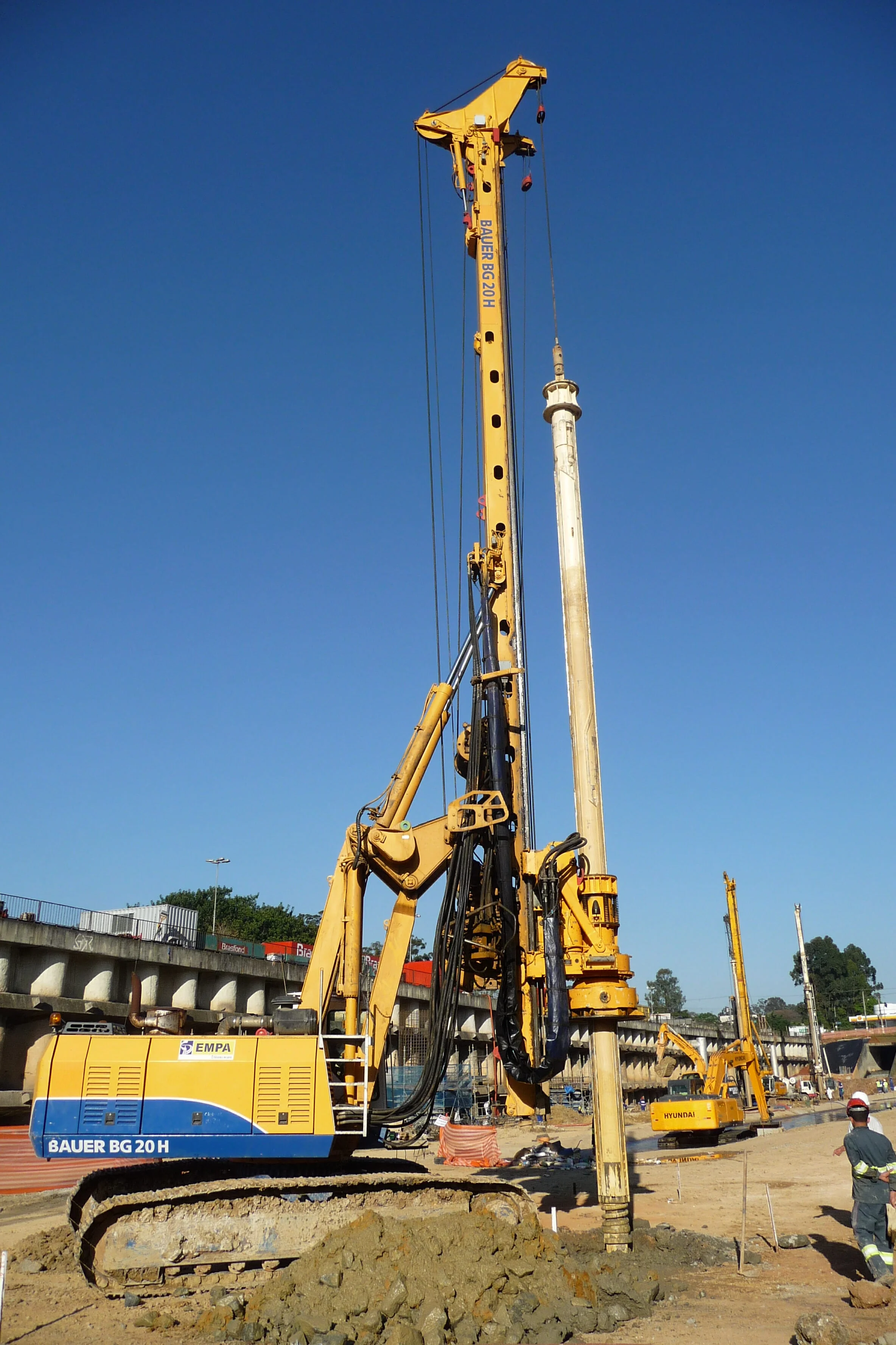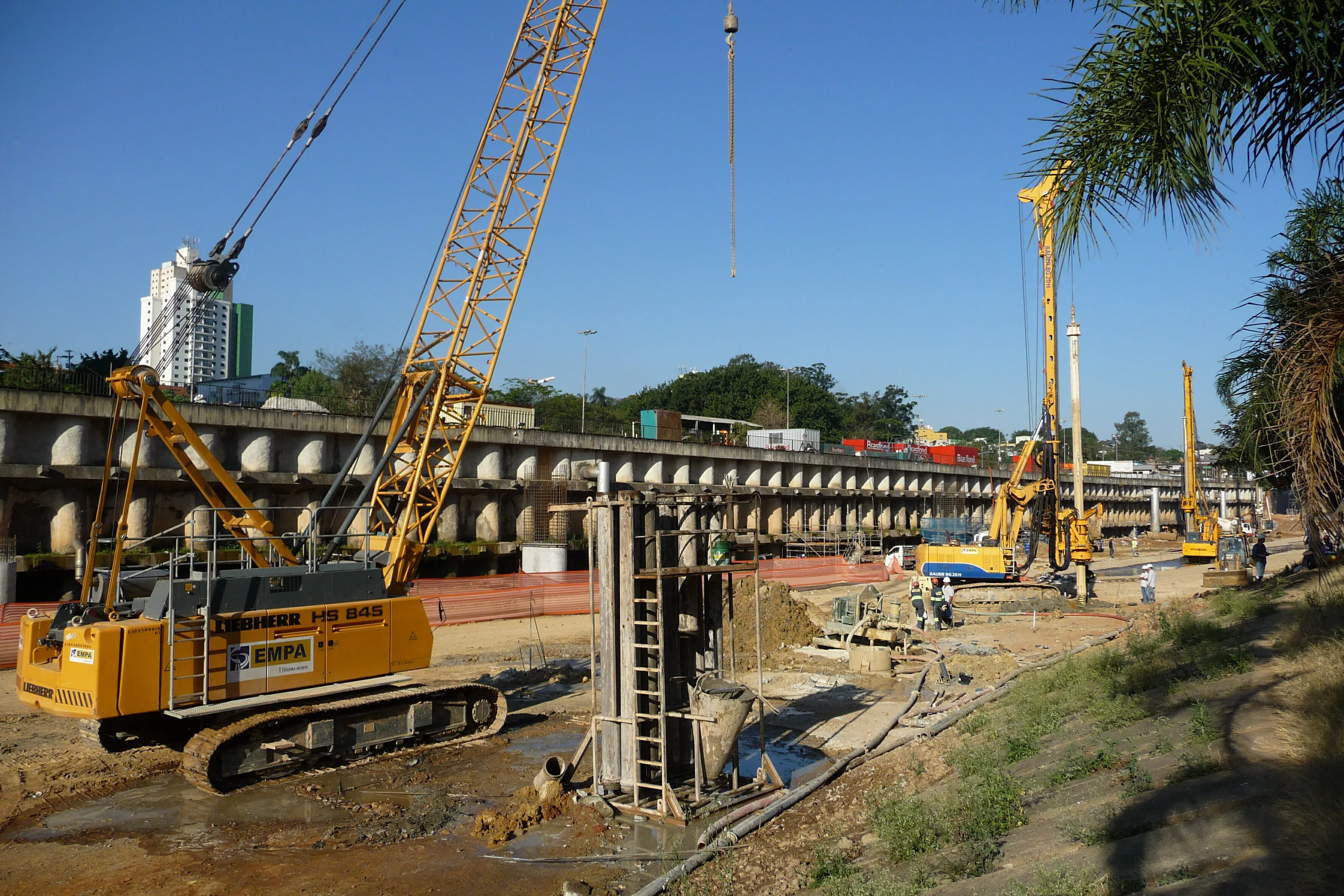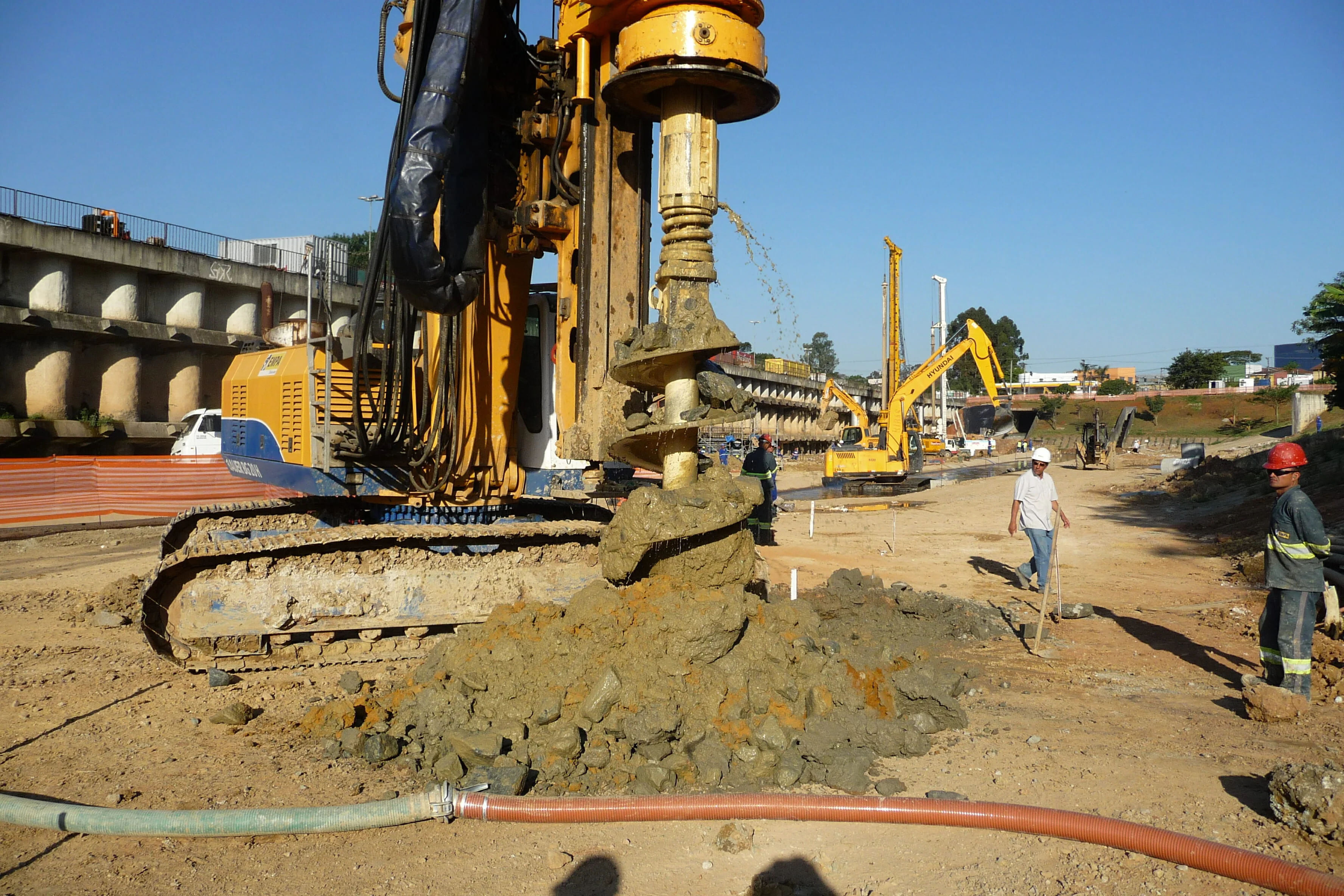 Execução de estacas de fundação profunda de grande diâmetro adequando a tecnologia de perfuração à heterogeneidade dos terrenos atravessados, incluindo rachão nos 8 metros superficiais (cravando para o efeito camisa metálica) e substrato rochoso e compatibilizando procedimentos em função dos constrangimentos usuais associados a obras executadas em recintos urbanos.