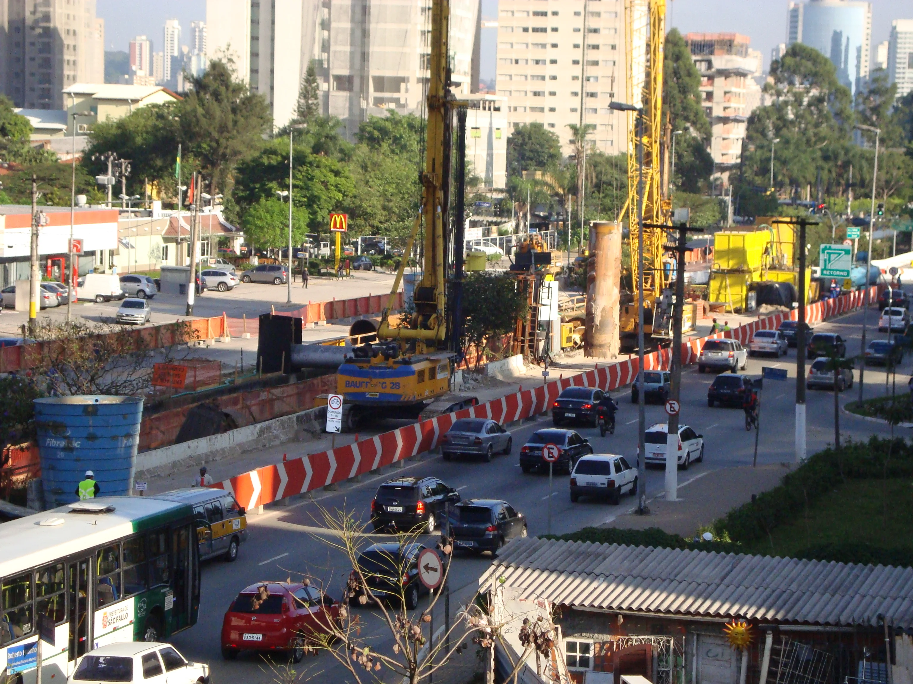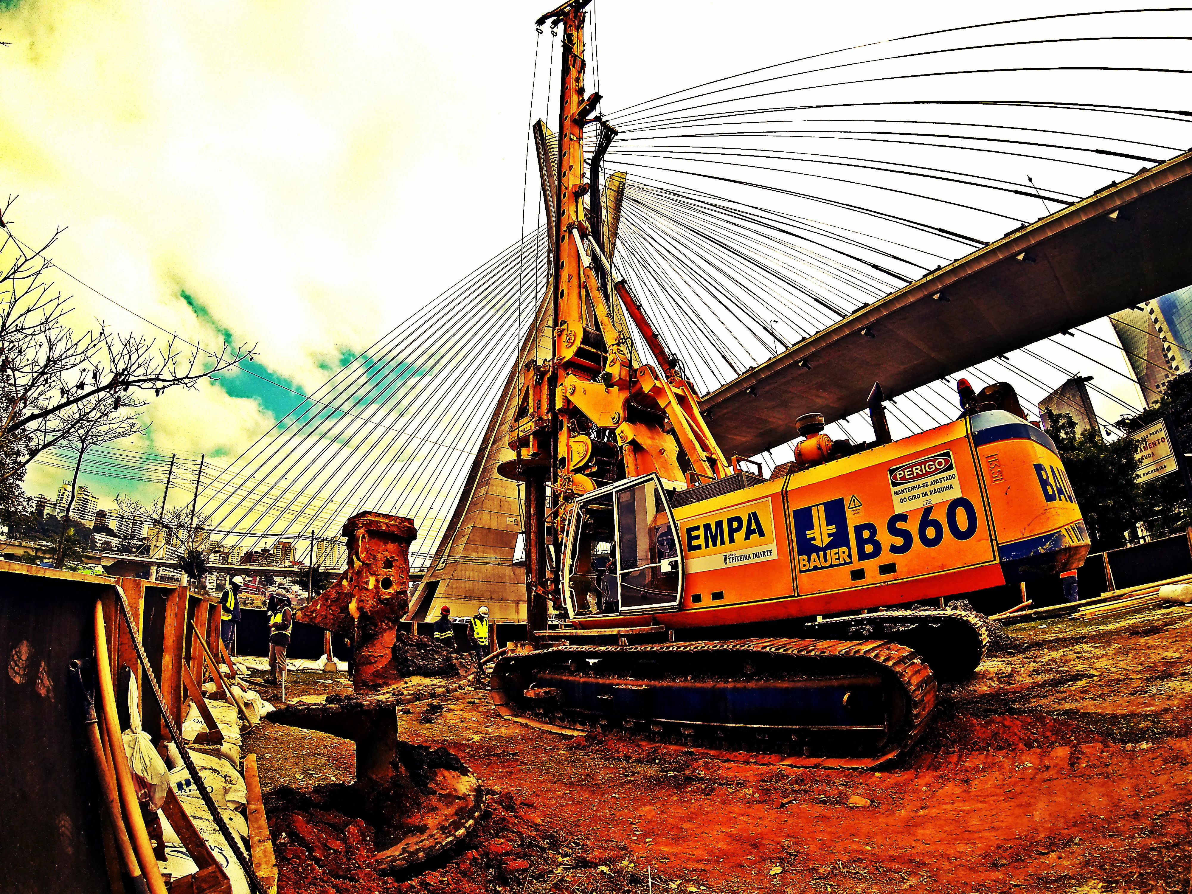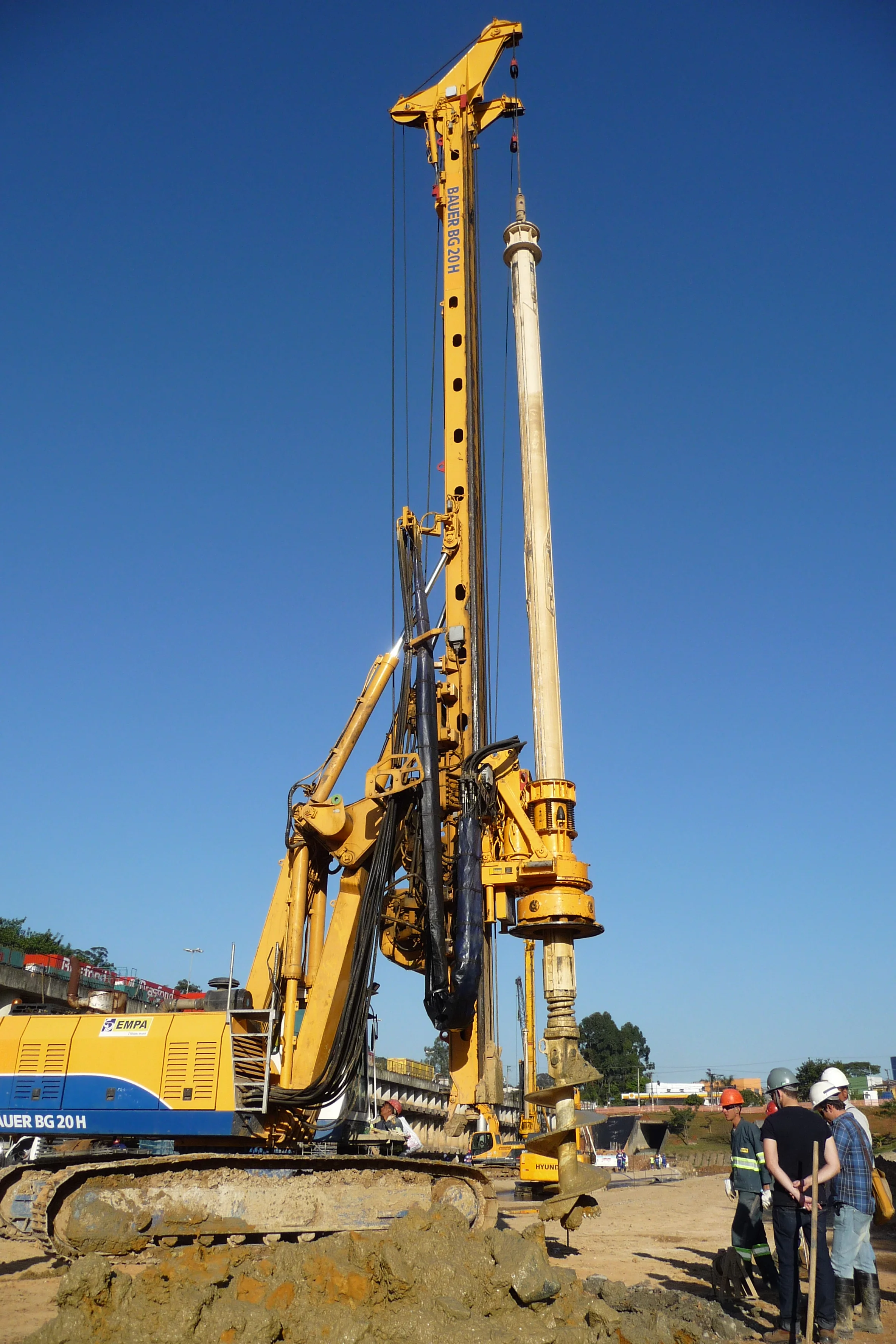 Execução de estacas de fundação profunda de grande diâmetro adequando a tecnologia de perfuração à heterogeneidade dos terrenos atravessados, incluindo rachão nos 8 metros superficiais (cravando para o efeito camisa metálica) e substrato rochoso e compatibilizando procedimentos em função dos constrangimentos usuais associados a obras executadas em recintos urbanos.