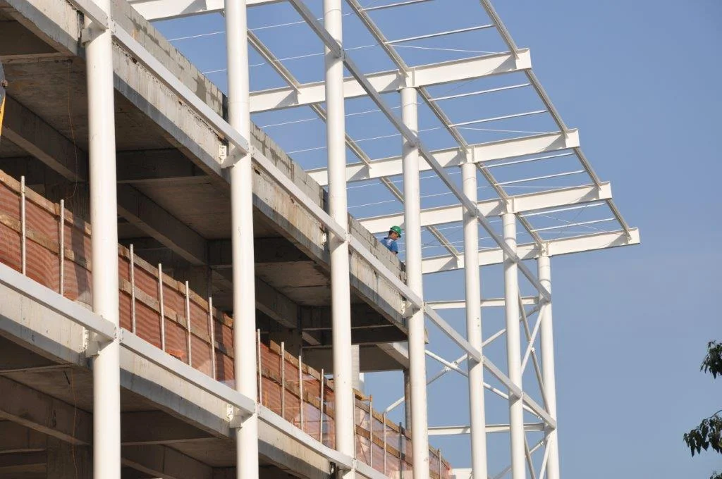 Destacam-se na construção os pisos em Granilite em todos os pavimentos, os guarda-corpos em aço inox, as lâminas de sombreamento na fachada principal do tipo