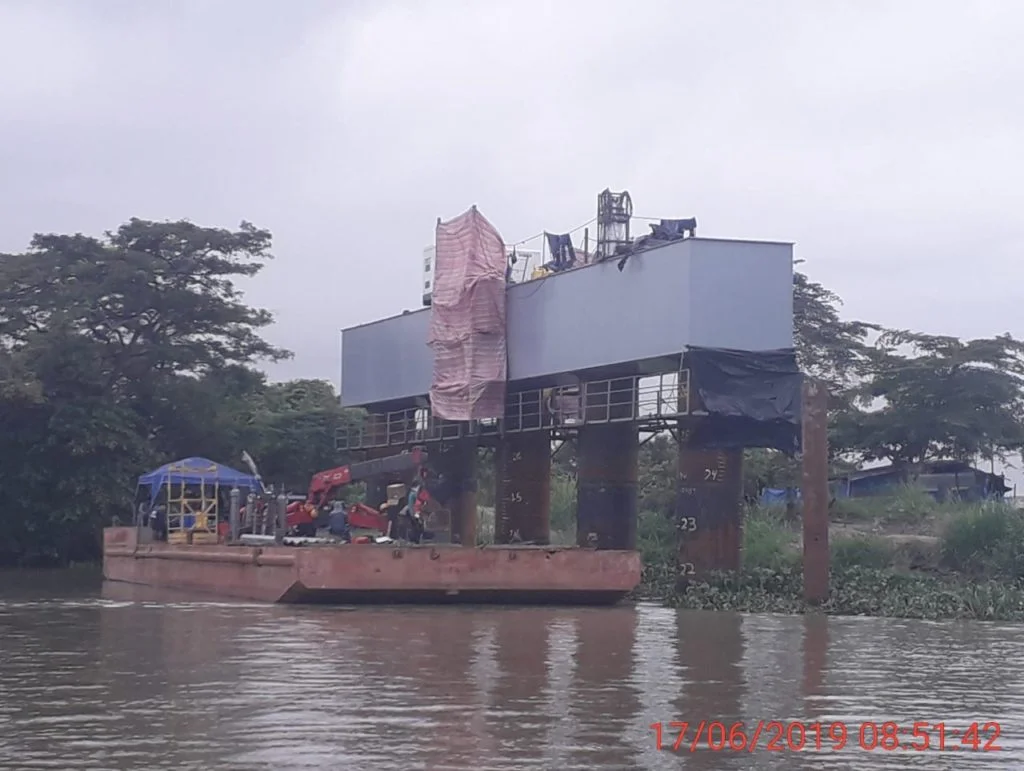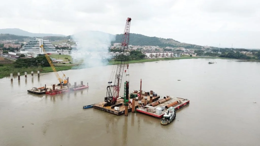 Construção da Ponte Daule – Guayaquil com 540 metros de extensão sobre o Rio Daule, formados por 9 vãos de 60m cada e um gabarito livre de aprox. 7m.