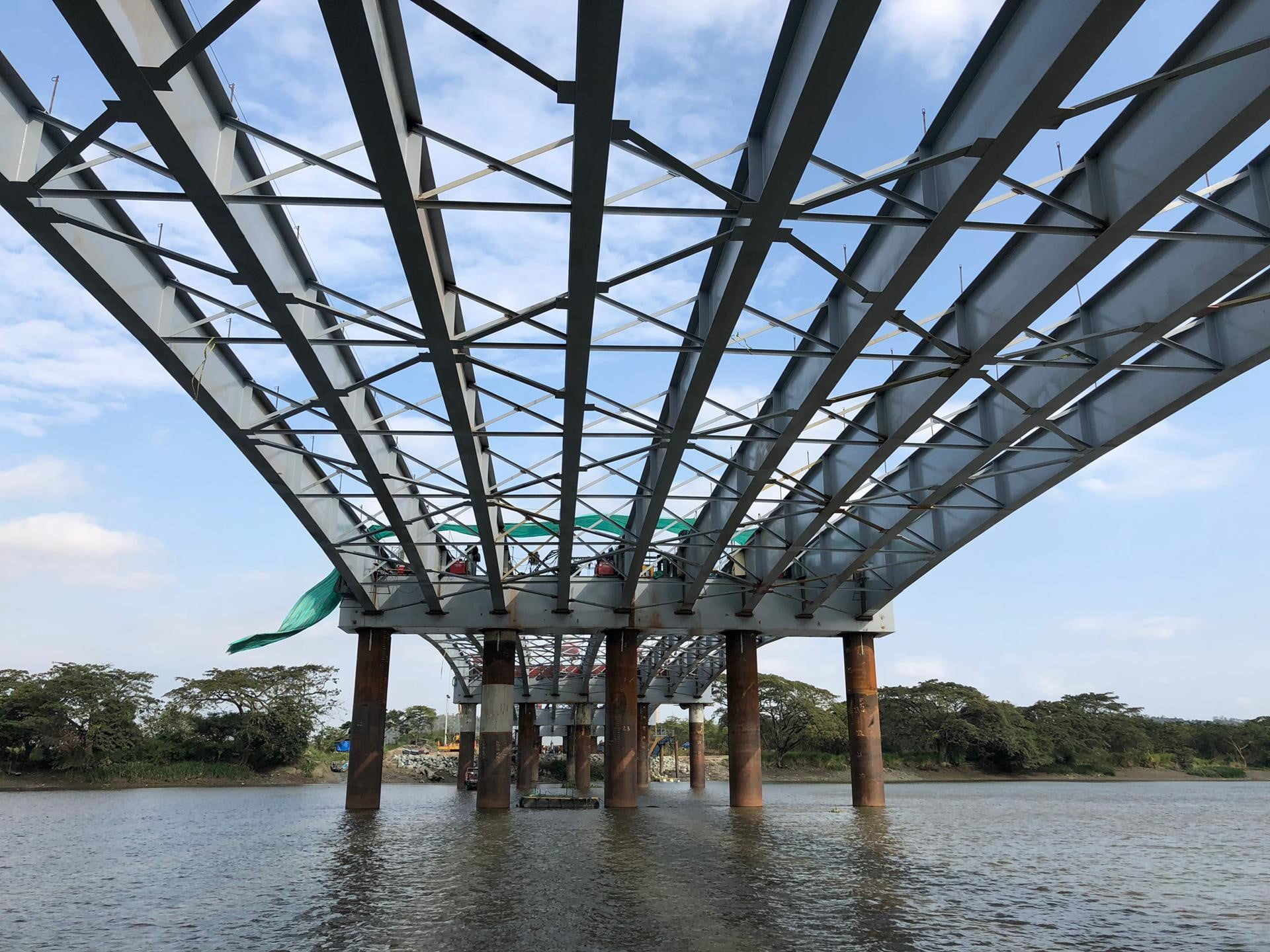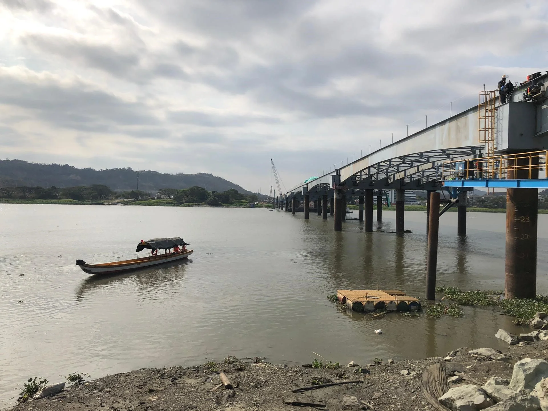 Construção da Ponte Daule – Guayaquil com 540 metros de extensão sobre o Rio Daule, formados por 9 vãos de 60m cada e um gabarito livre de aprox. 7m.
