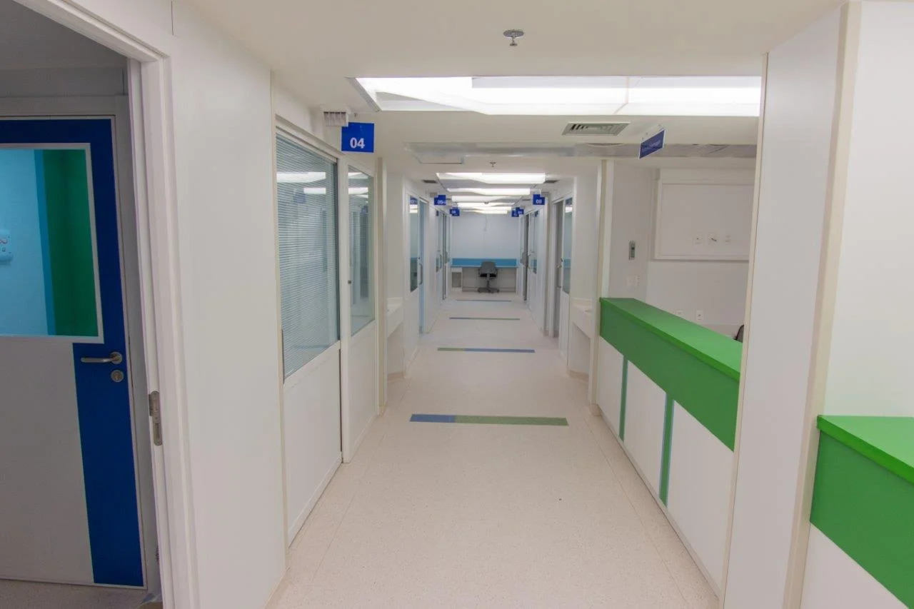 Acabamentos de civil com 11.873 m² de ATC, compreendendo execução de Emergências e UTI adulta e pediátrica, com 63 leitos, incluindo estacionamentos e áreas técnicas: