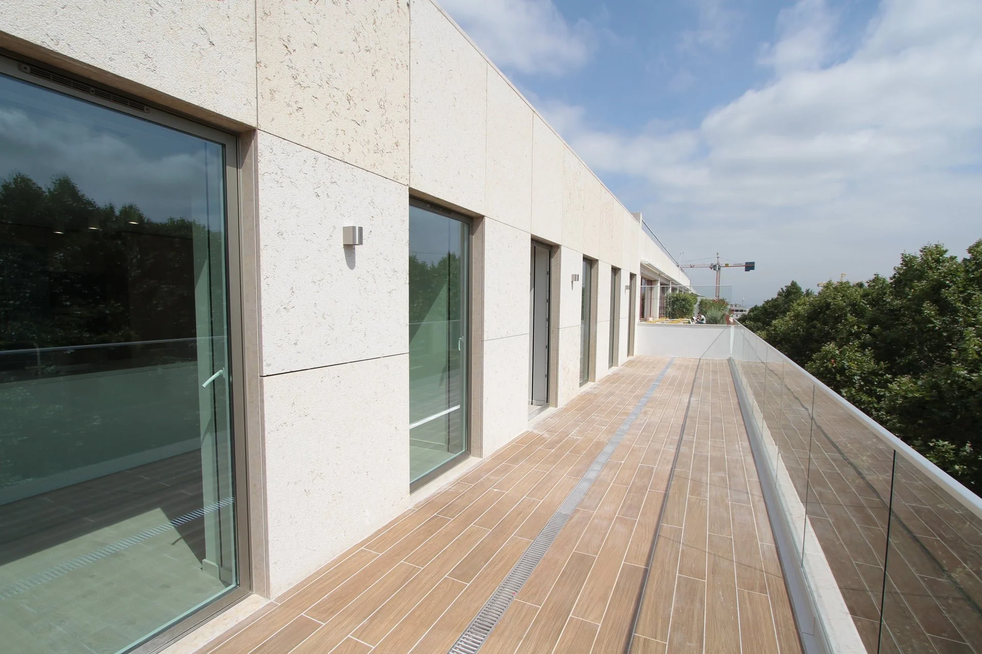 Área de fachada ventilada em pedra natural Lioz: 950 m2
