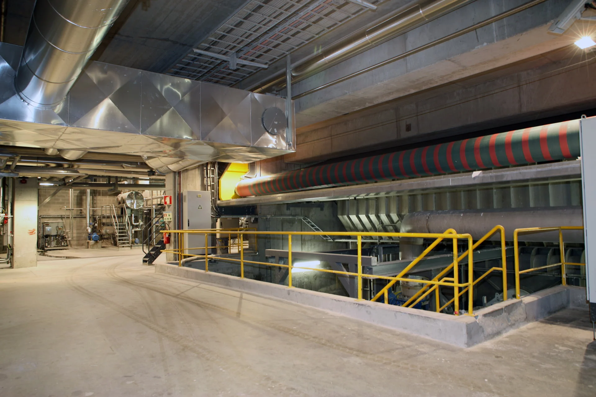 Cobertura metálica revestida a chapa isotérmica, fachadas em blocos de betão e painéis pré-fabricados revestidos e painéis metálicos.