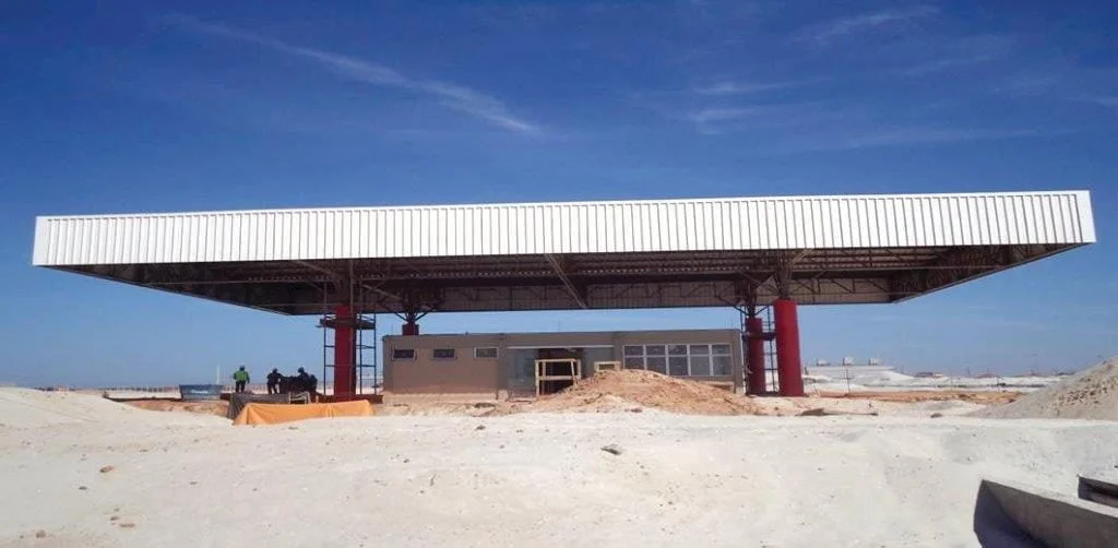 Execução de obras civis denominadas On Shore IV integrantes do Projeto de Implantação do Complexo Industrial do Superporto do Açu em São João da Barra, no Rio de Janeiro, referentes à construção, na área administrativa, dos prédios da Receita Federal, do vestiário dos funcionários, da administração, do refeitório/restaurante, de apoio à ofcina/almoxarifado, do laboratório e do galpão da oficina/almoxarifado e edifícios complementares, com área total de construção de 6.300 m². A construção é executada em fundação direta, superestrutura em concreto armado, com alvenaria de blocos de concreto aparente pintado e cobertura em telhas metálicas CRFS, incluindo a execução de instalações e o desenvolvimento do projeto executivo dos galpões.