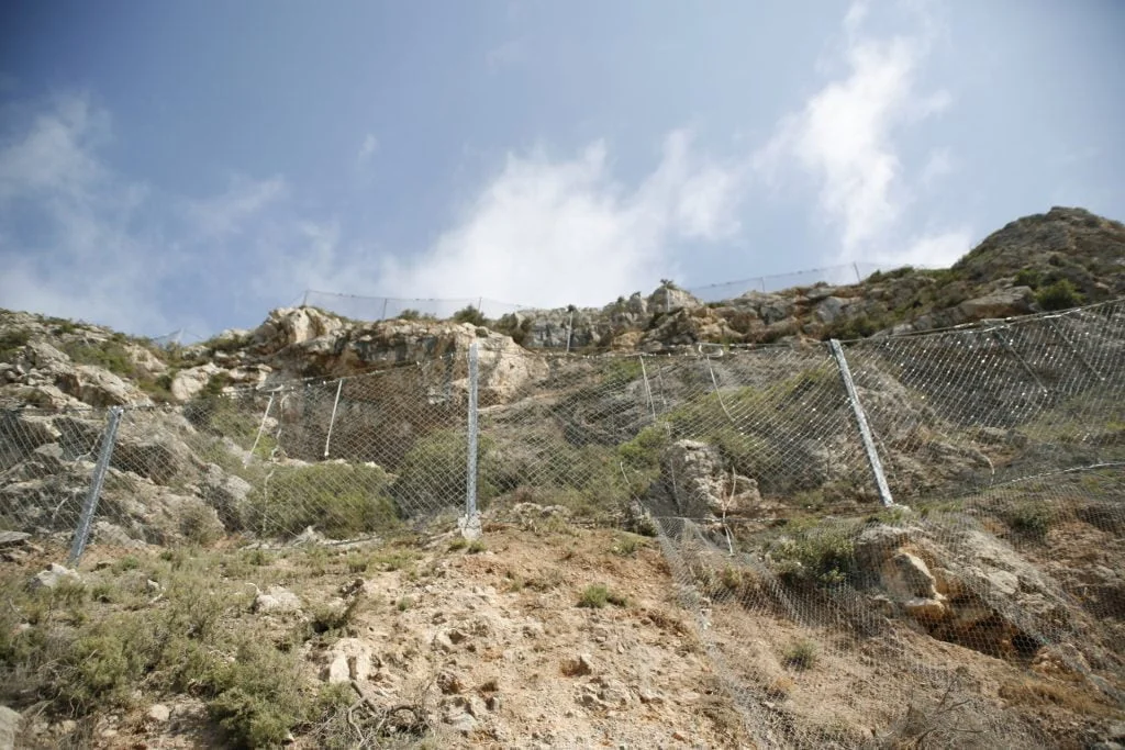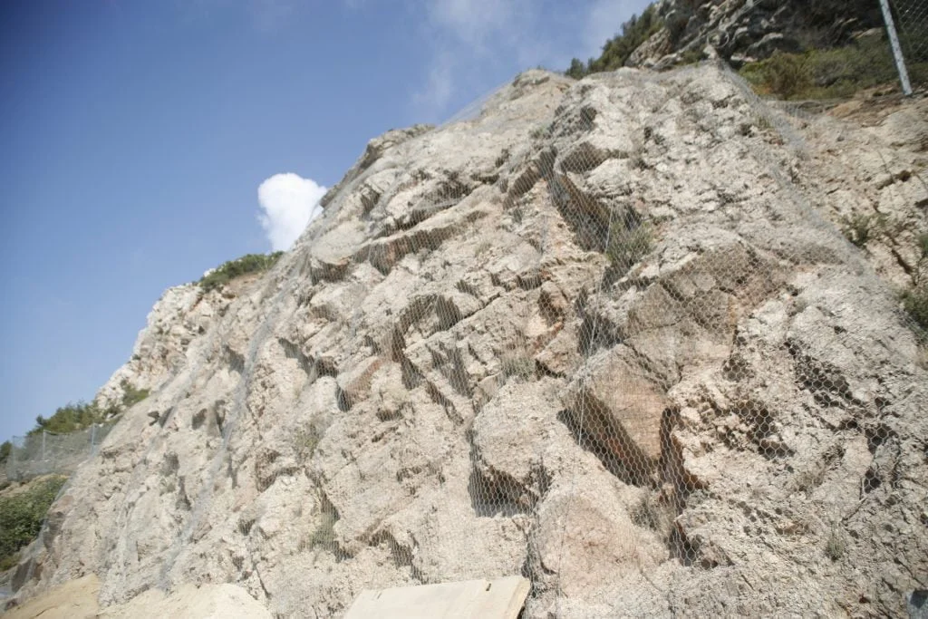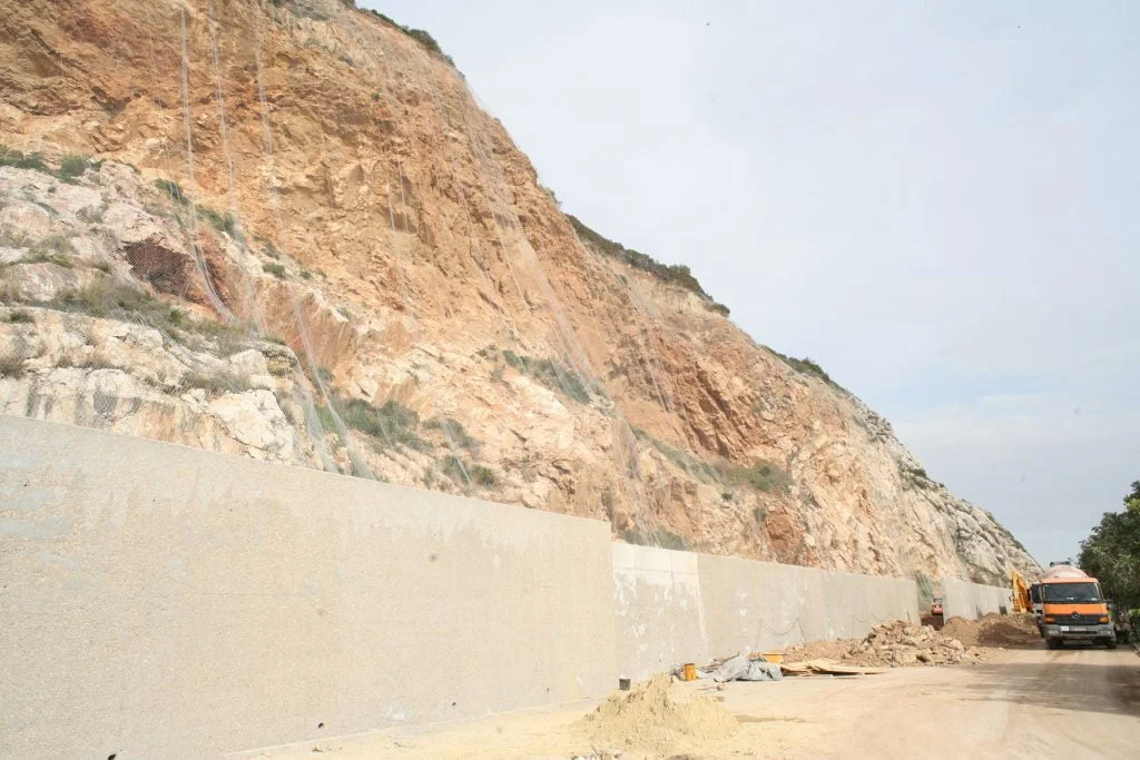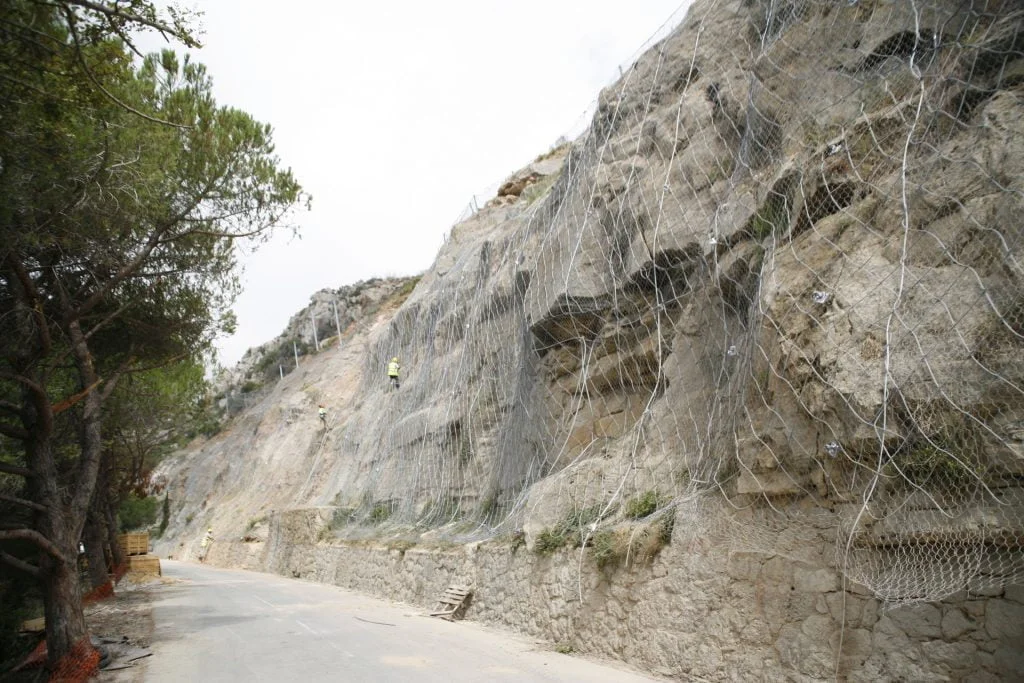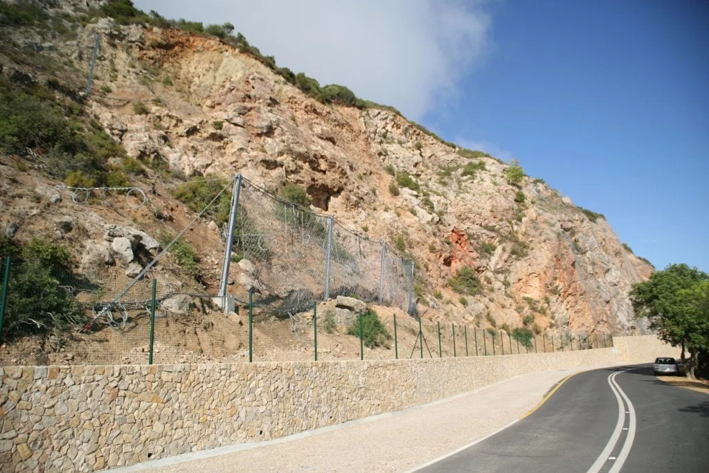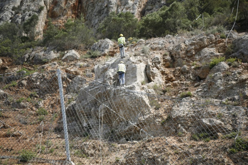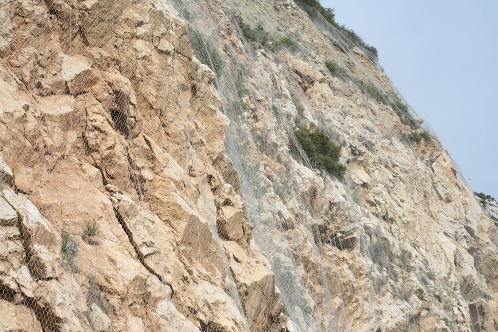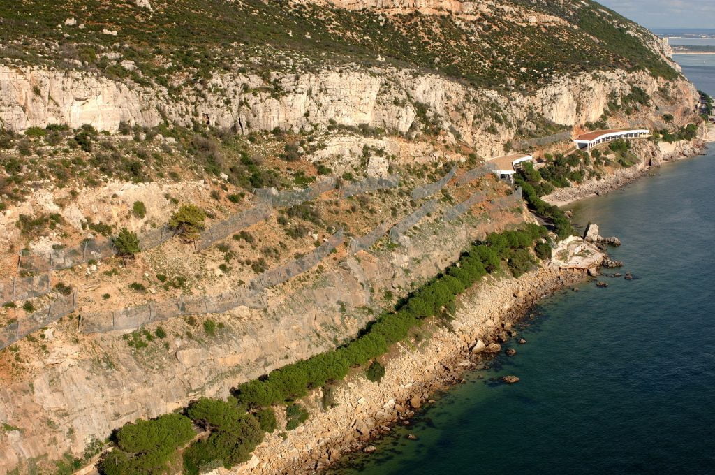 Trabalhos de estabilização da encosta da Serra da Arrábida, numa extensão aproximada de 4.000 m, entre o Outão e o Portinho da Arrábida através da execução de barreiras dinâmicas de alta e média resistência, redes de proteção pregadas, túneis falsos em concreto armado, muros de suporte, pregagens e ancoragens.