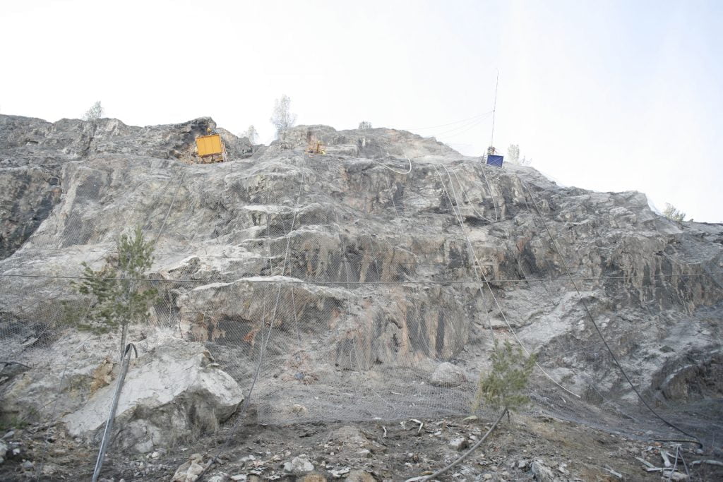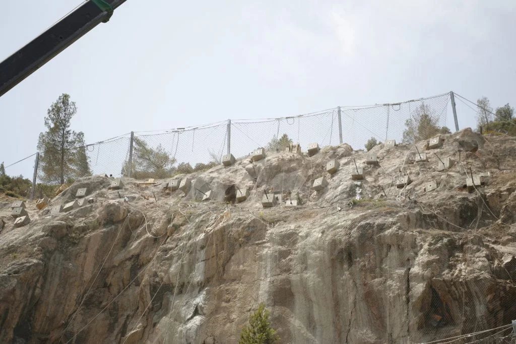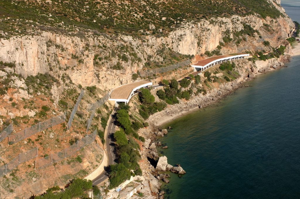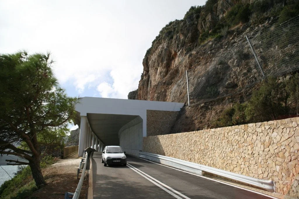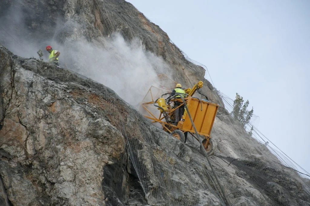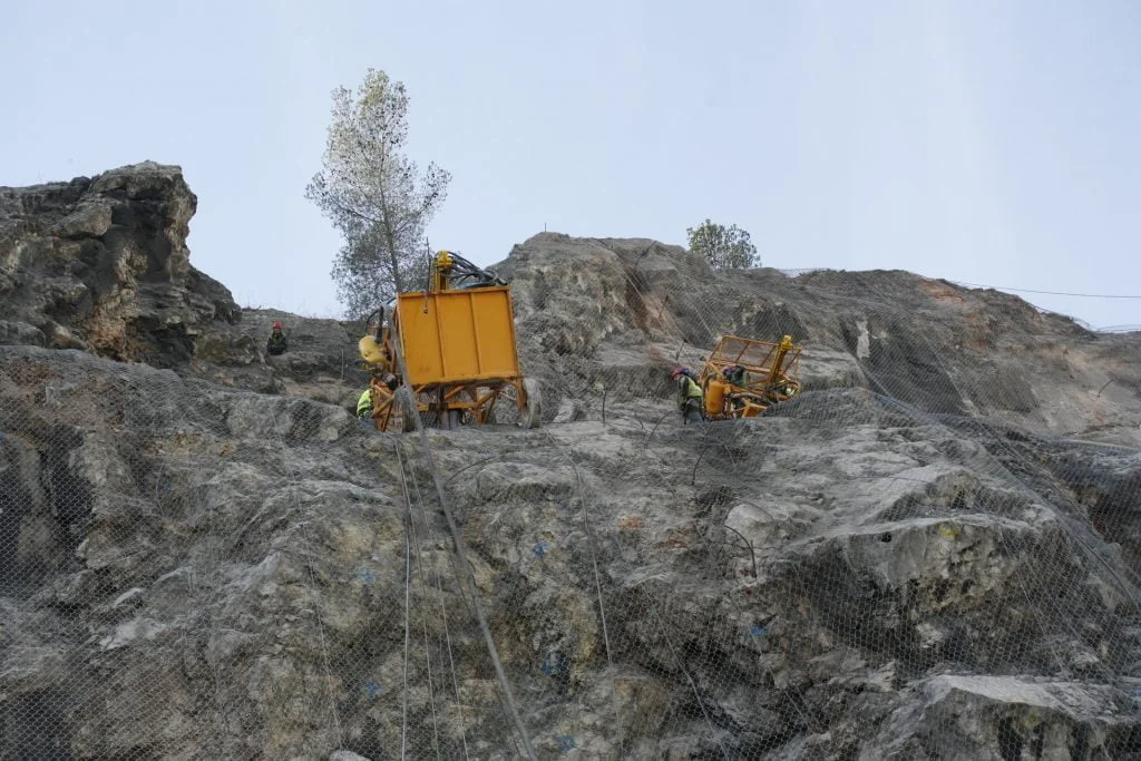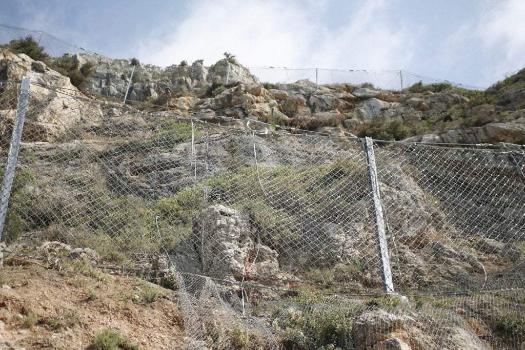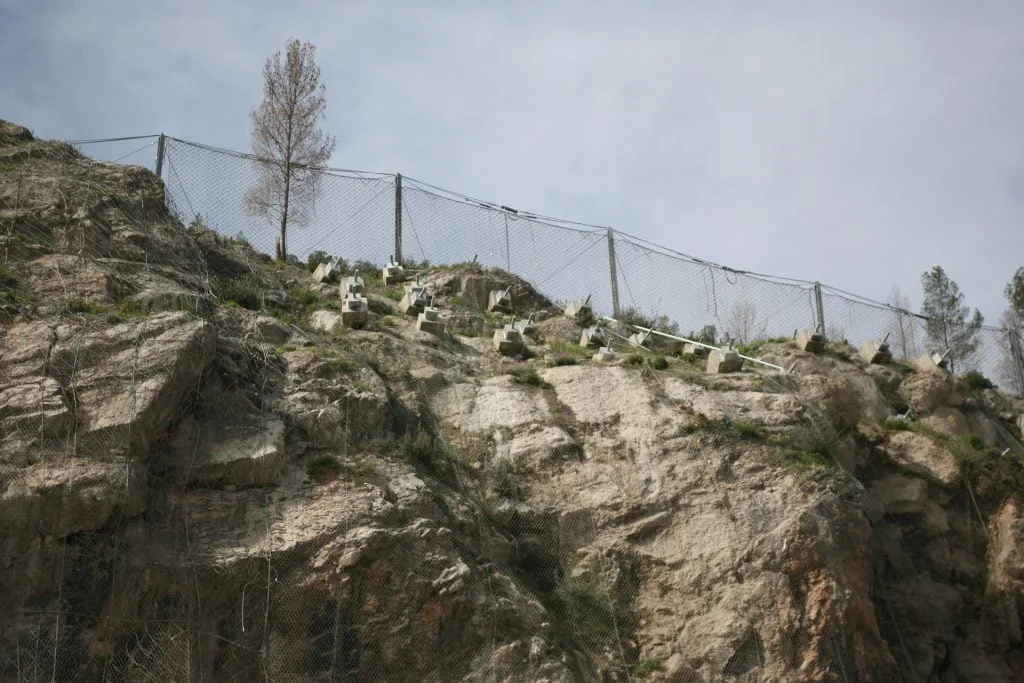 Trabalhos de estabilização da encosta da Serra da Arrábida, numa extensão aproximada de 4.000 m, entre o Outão e o Portinho da Arrábida através da execução de barreiras dinâmicas de alta e média resistência, redes de proteção pregadas, túneis falsos em concreto armado, muros de suporte, pregagens e ancoragens.