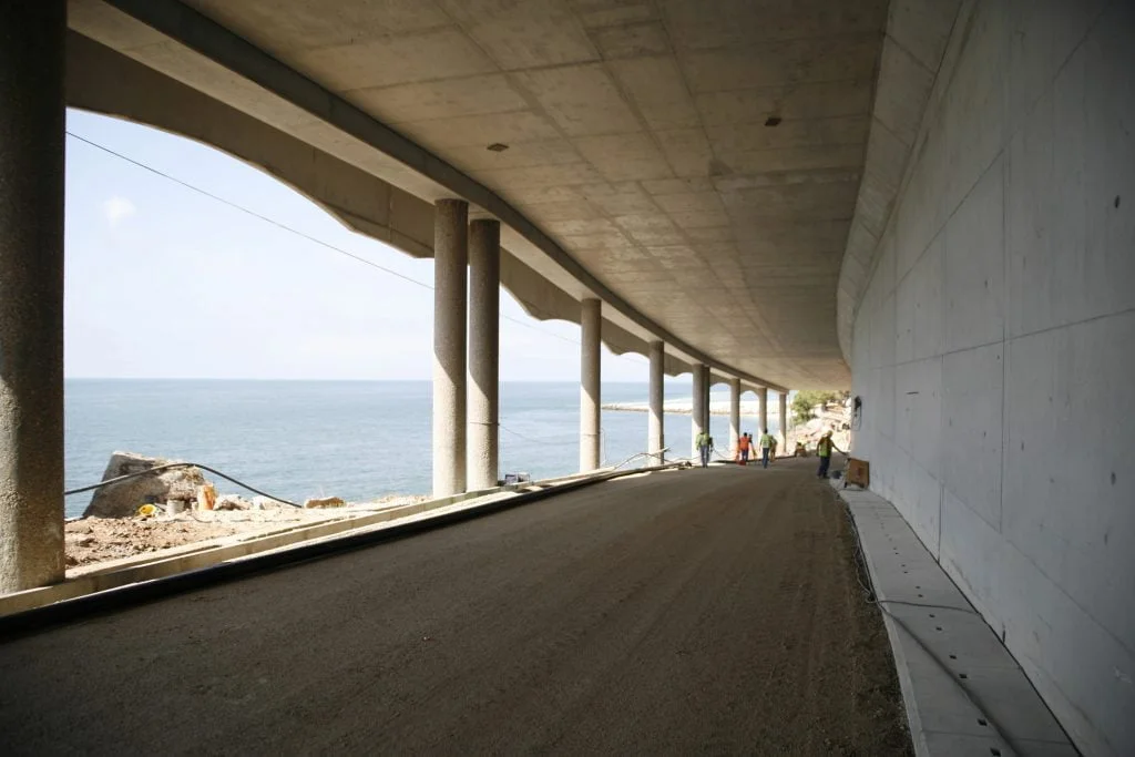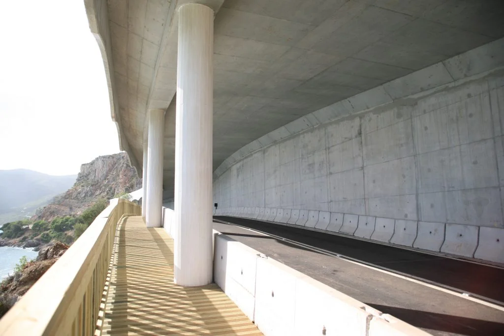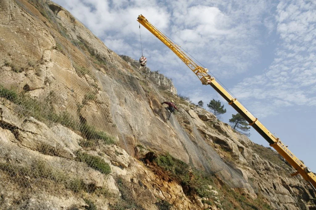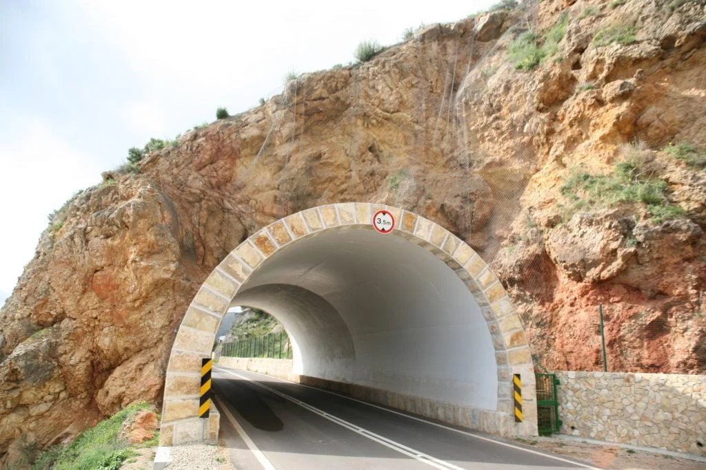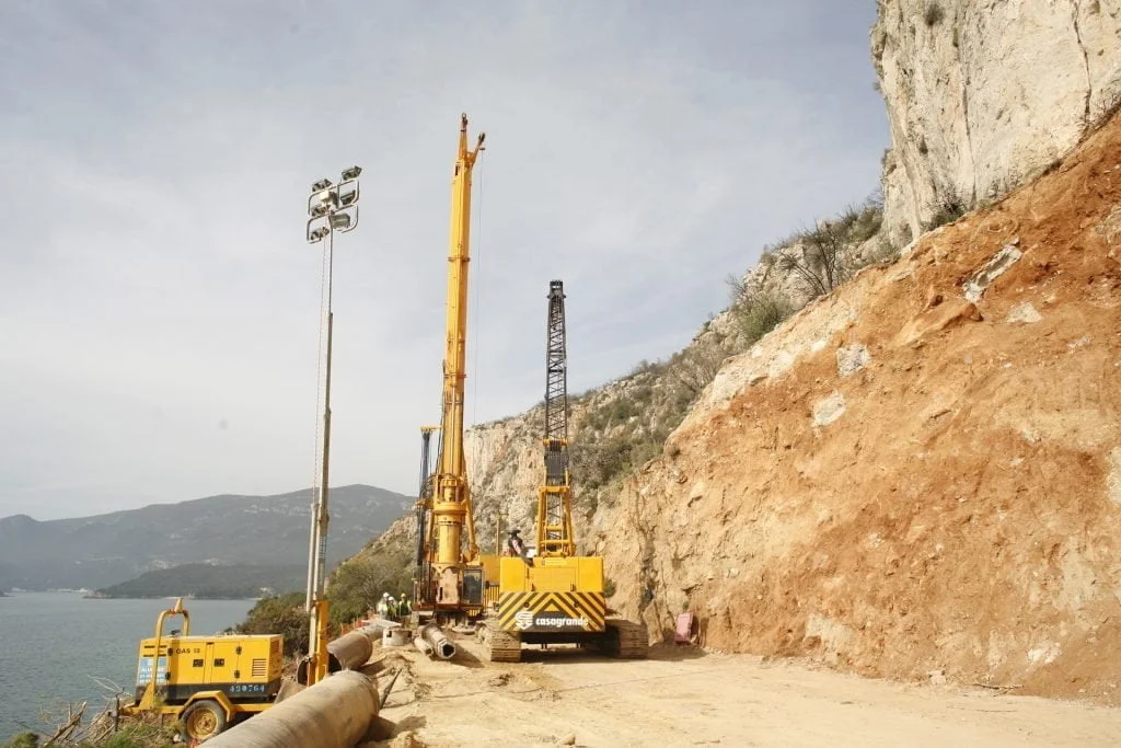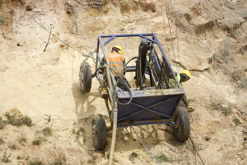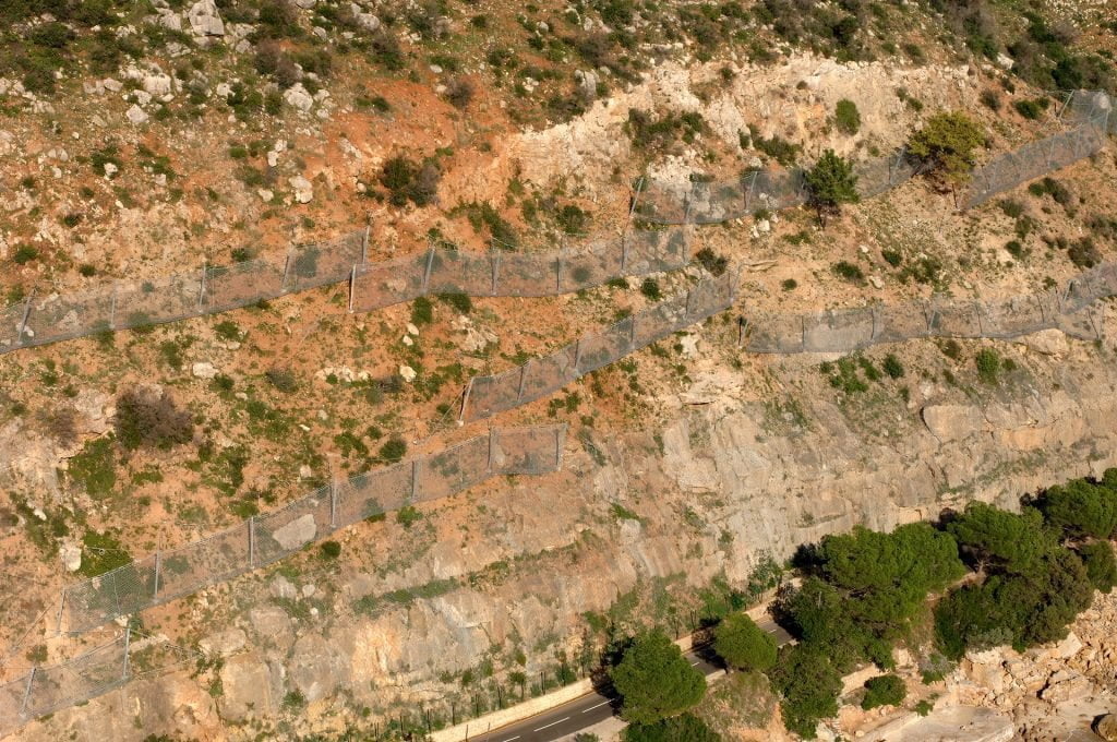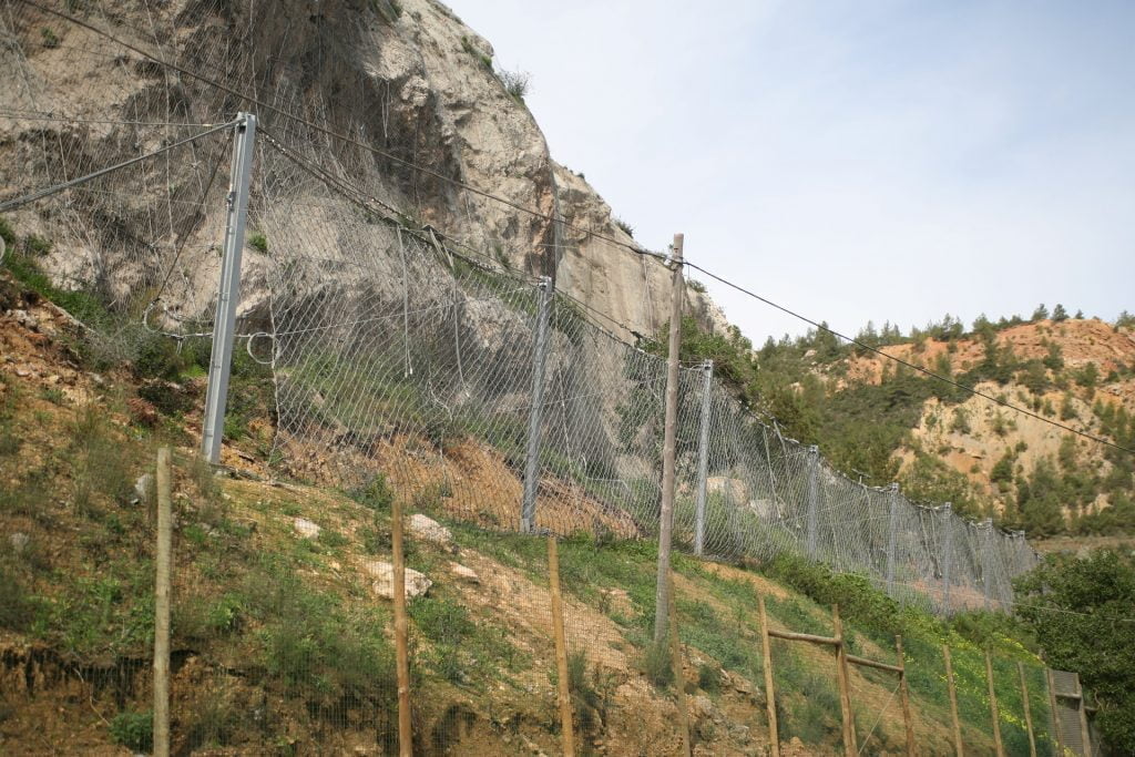 Trabalhos de estabilização da encosta da Serra da Arrábida, numa extensão aproximada de 4.000 m, entre o Outão e o Portinho da Arrábida através da execução de barreiras dinâmicas de alta e média resistência, redes de proteção pregadas, túneis falsos em concreto armado, muros de suporte, pregagens e ancoragens.