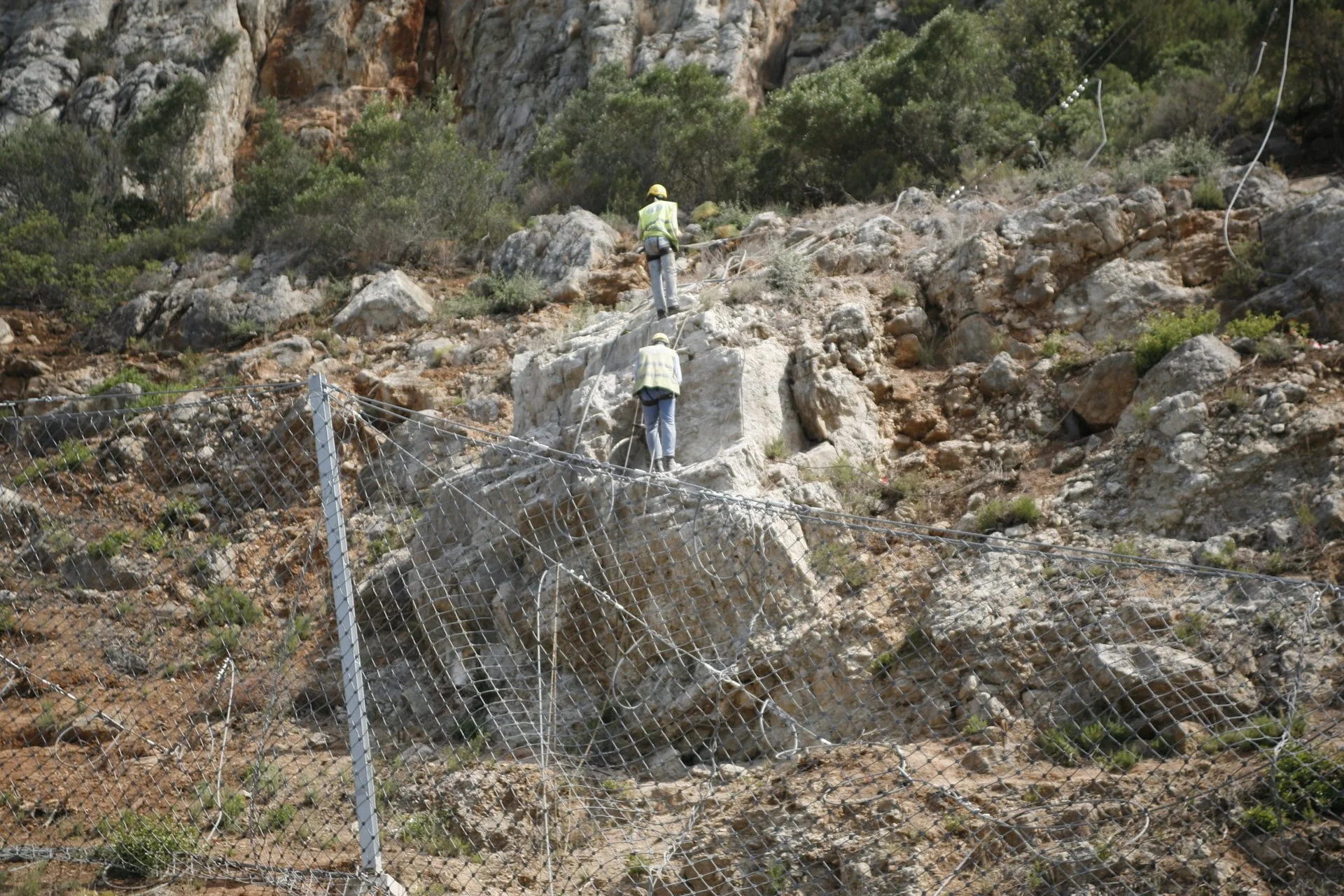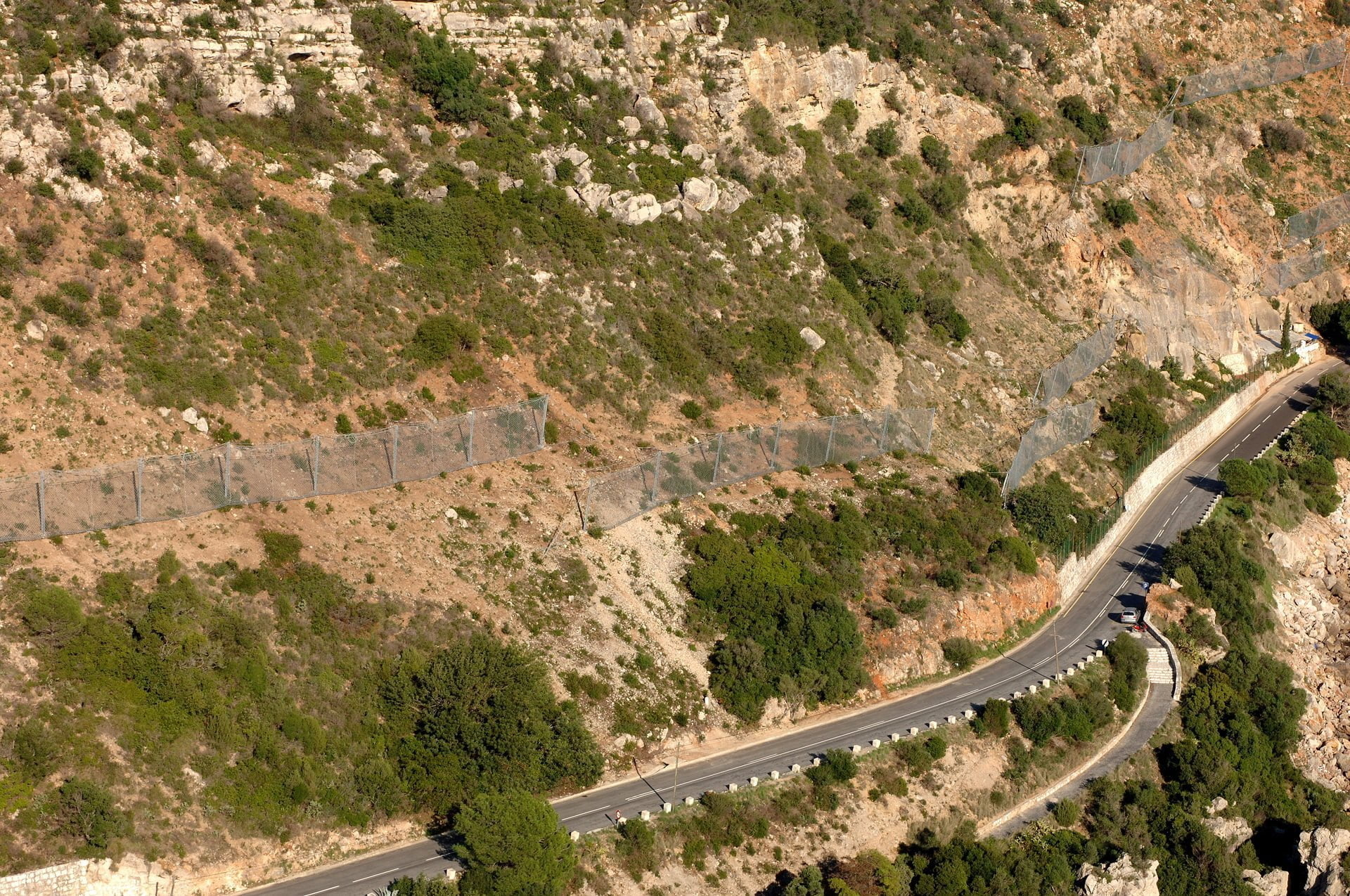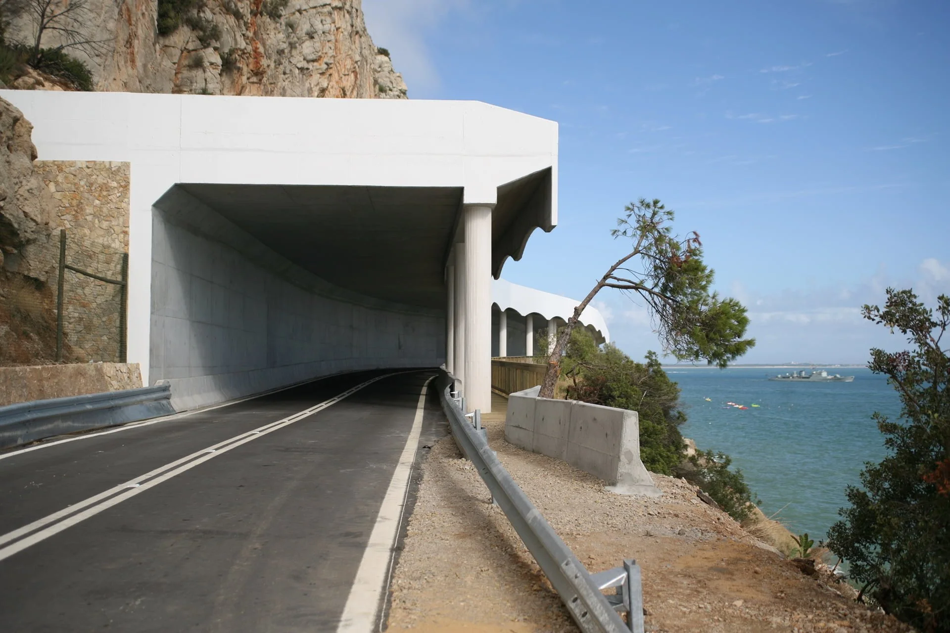 Trabalhos de estabilização da encosta da Serra da Arrábida, numa extensão aproximada de 4.000 m, entre o Outão e o Portinho da Arrábida através da execução de barreiras dinâmicas de alta e média resistência, redes de proteção pregadas, túneis falsos em concreto armado, muros de suporte, pregagens e ancoragens.