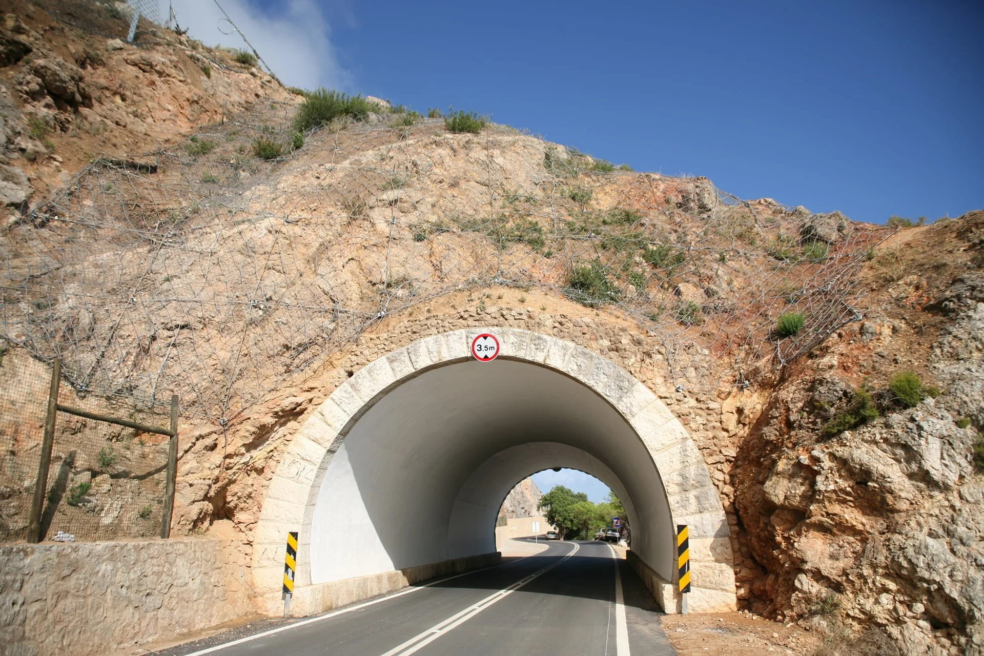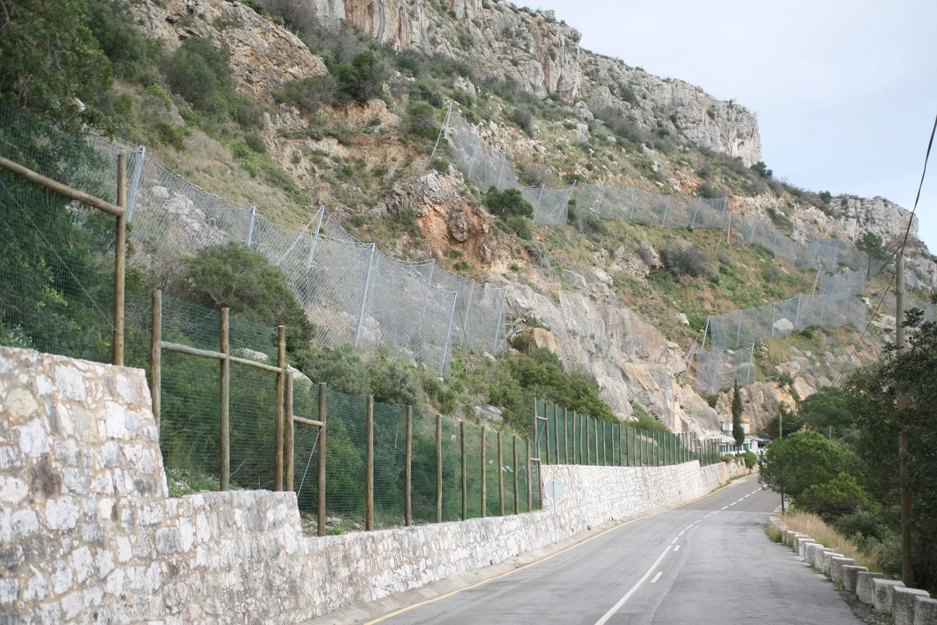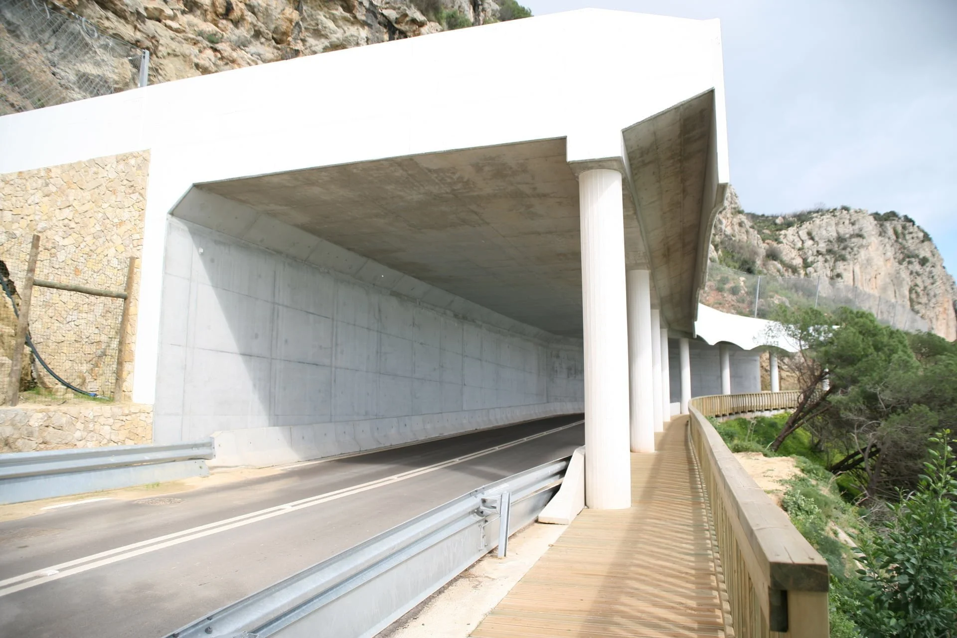 Trabalhos de estabilização da encosta da Serra da Arrábida, numa extensão aproximada de 4.000 m, entre o Outão e o Portinho da Arrábida através da execução de barreiras dinâmicas de alta e média resistência, redes de proteção pregadas, túneis falsos em concreto armado, muros de suporte, pregagens e ancoragens.