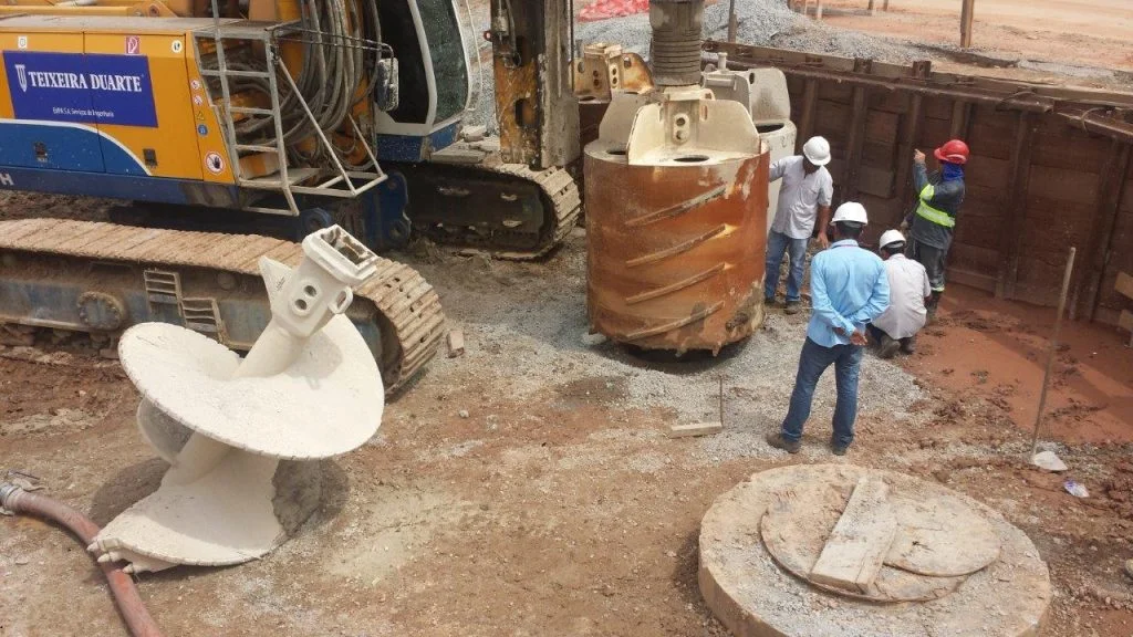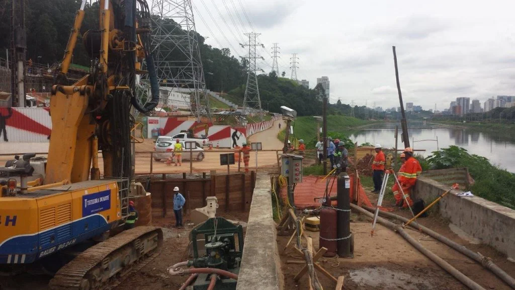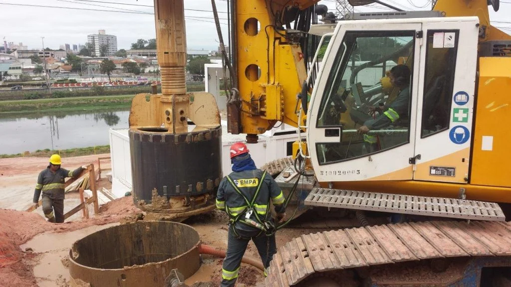 Execução de fundações profundas em estacas escavadas de grande diâmetro (escavação, armação e concretagem) em solo e rocha.