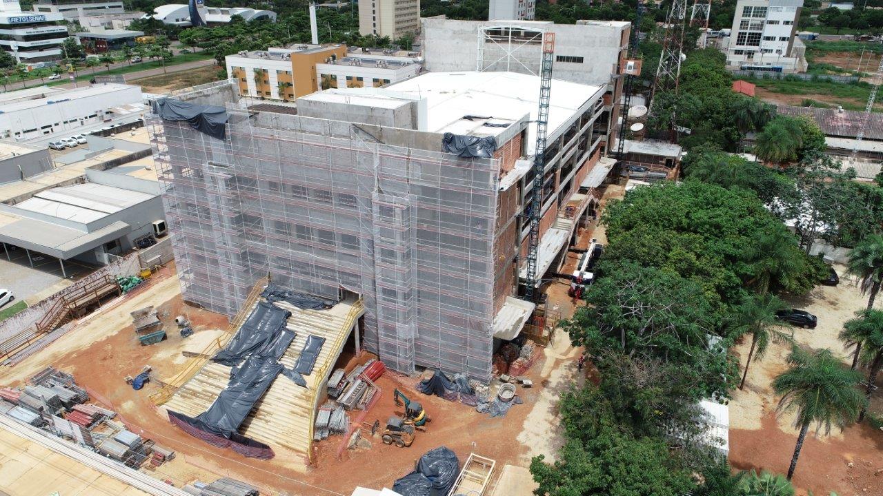 Trabalhos de Edifcações (7.528,47m²): execução de fundações, estrutura de concreto, estrutura metálica, coberturas, impermeabilizações, vedações e rebocos, acabamentos, instalações elétricas, hidráulicas, de ar-condicionado e especiais, paisagismo.