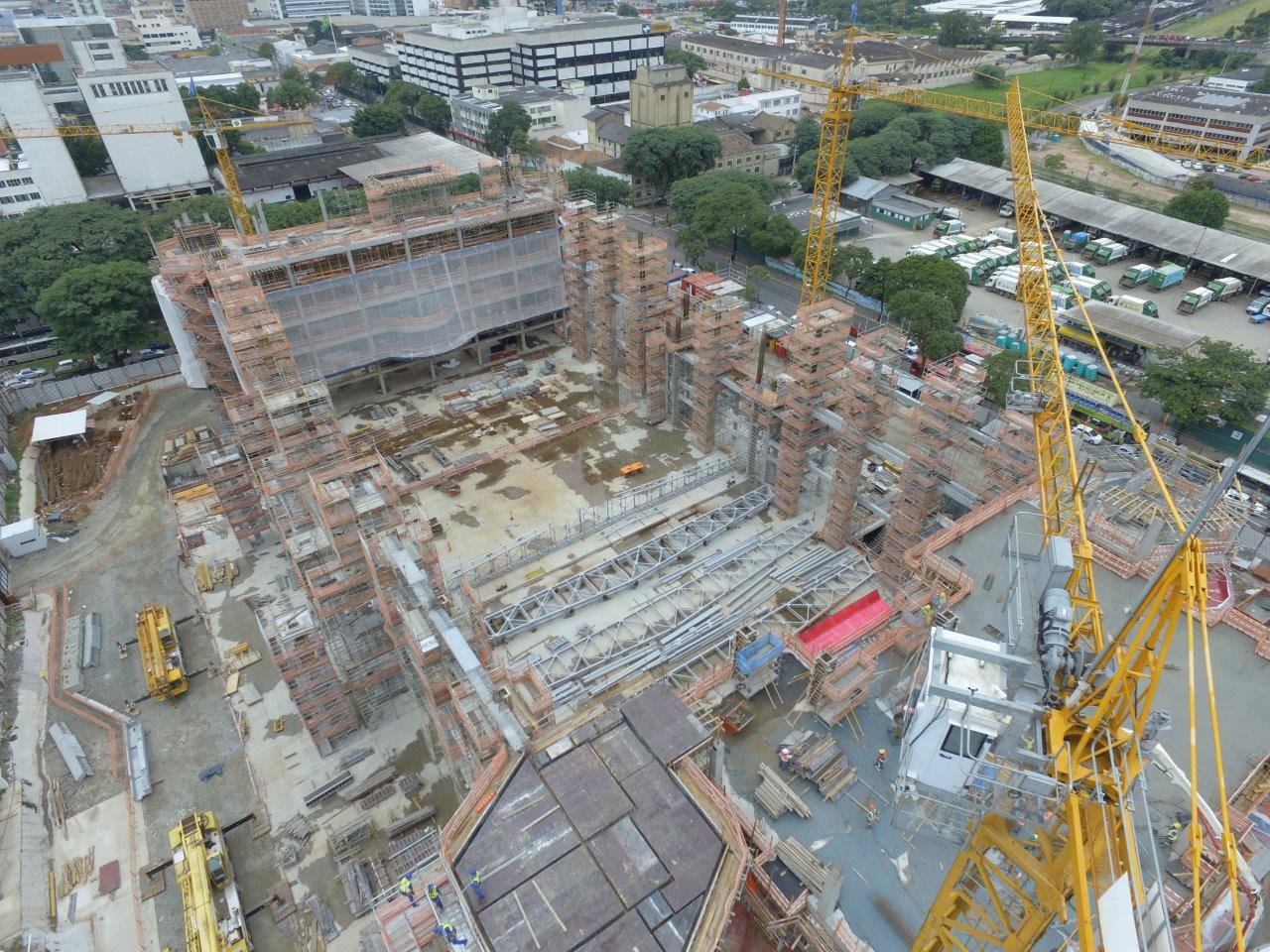 Trabalhos de Edifcações (41.000m²): Execução de Fundações Diretas, Estrutura de Concreto, Estrutura Metálica, Coberturas, Impermeabilizações, Vedações e Rebocos, Acabamentos, Instalações Elétricas, Hidráulicas, de Ar-condicionado e Especiais, Paisagismo e Sinalética.
