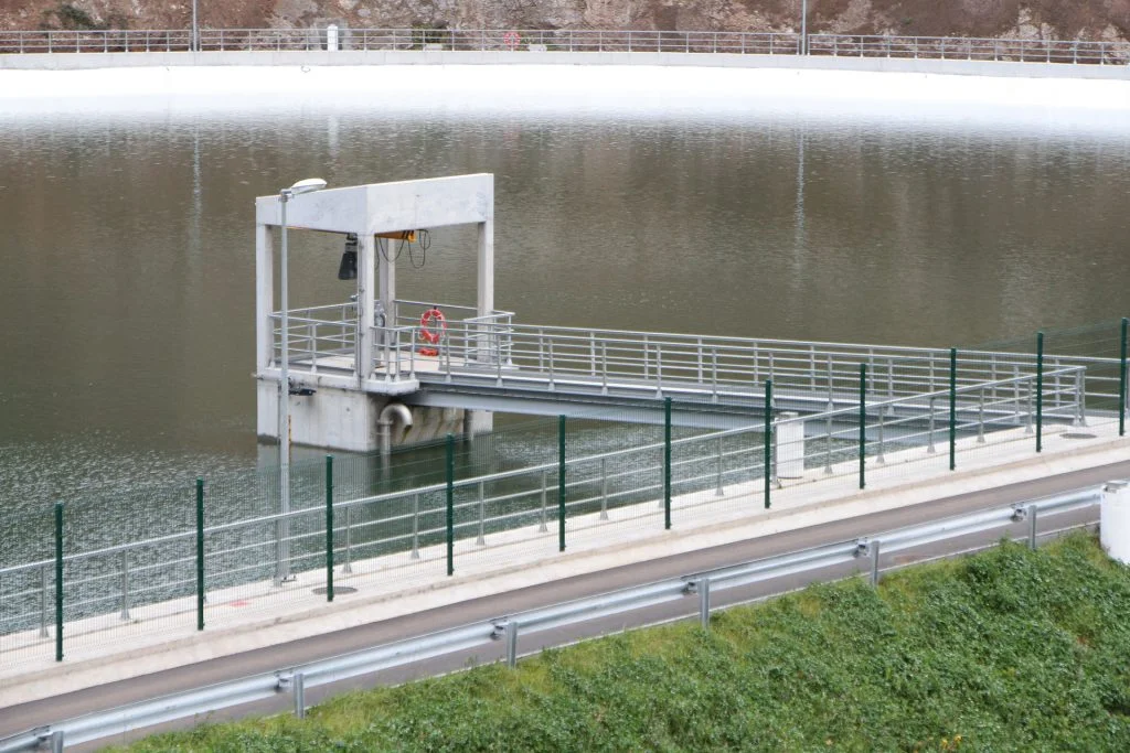 – Capacidade total de armazenamento de água de 87.800 m3, entre o fundo (à cota 728) e o nível de pleno armazenamento (NPA=738,5);