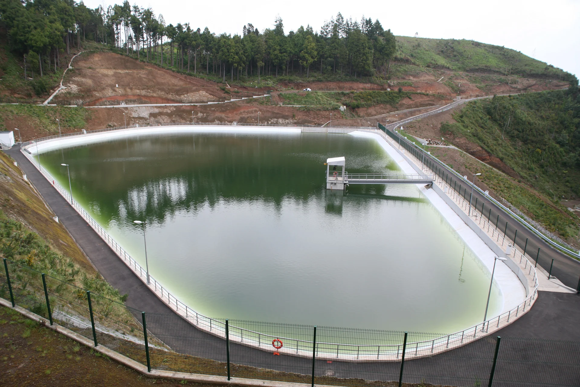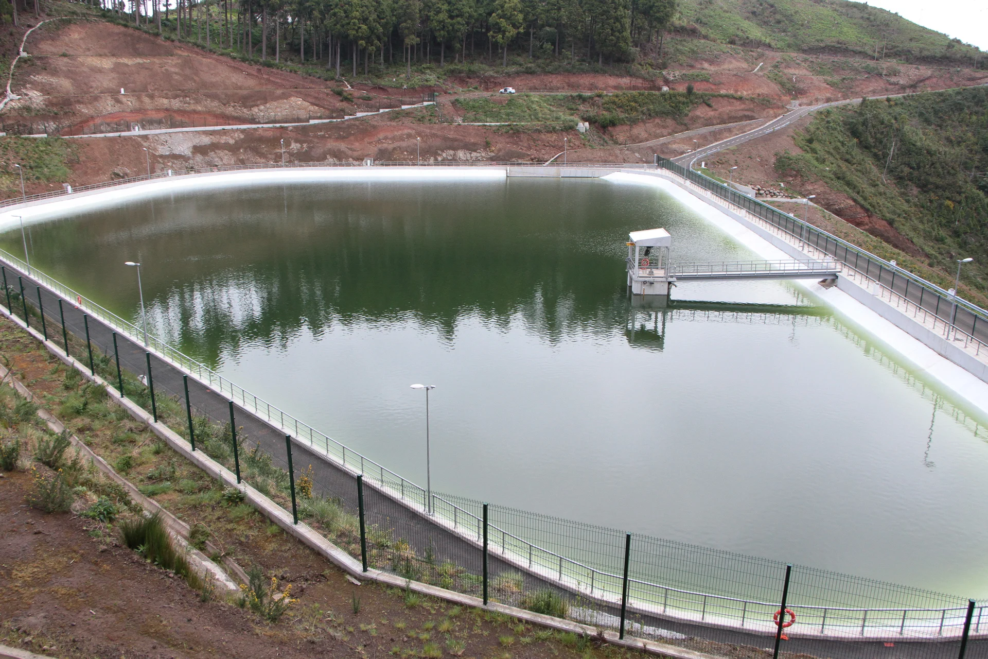 – Capacidade total de armazenamento de água de 87.800 m3, entre o fundo (à cota 728) e o nível de pleno armazenamento (NPA=738,5);