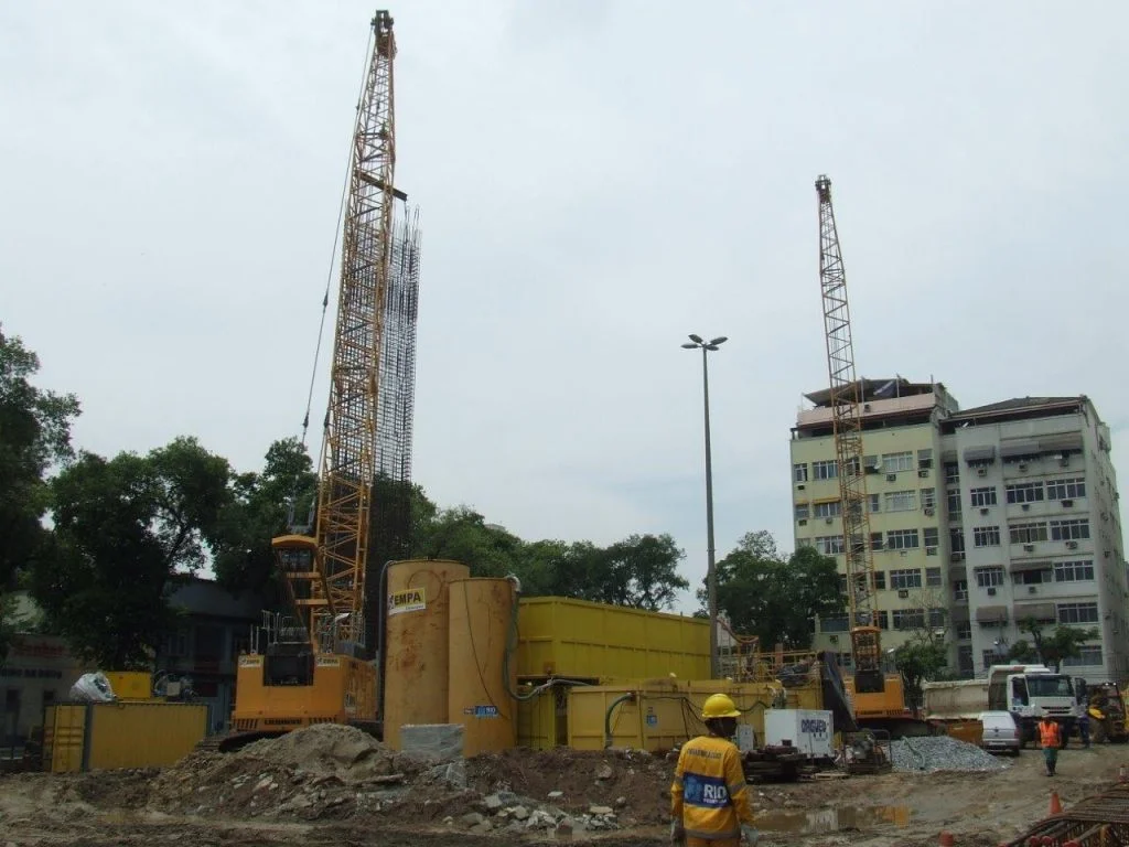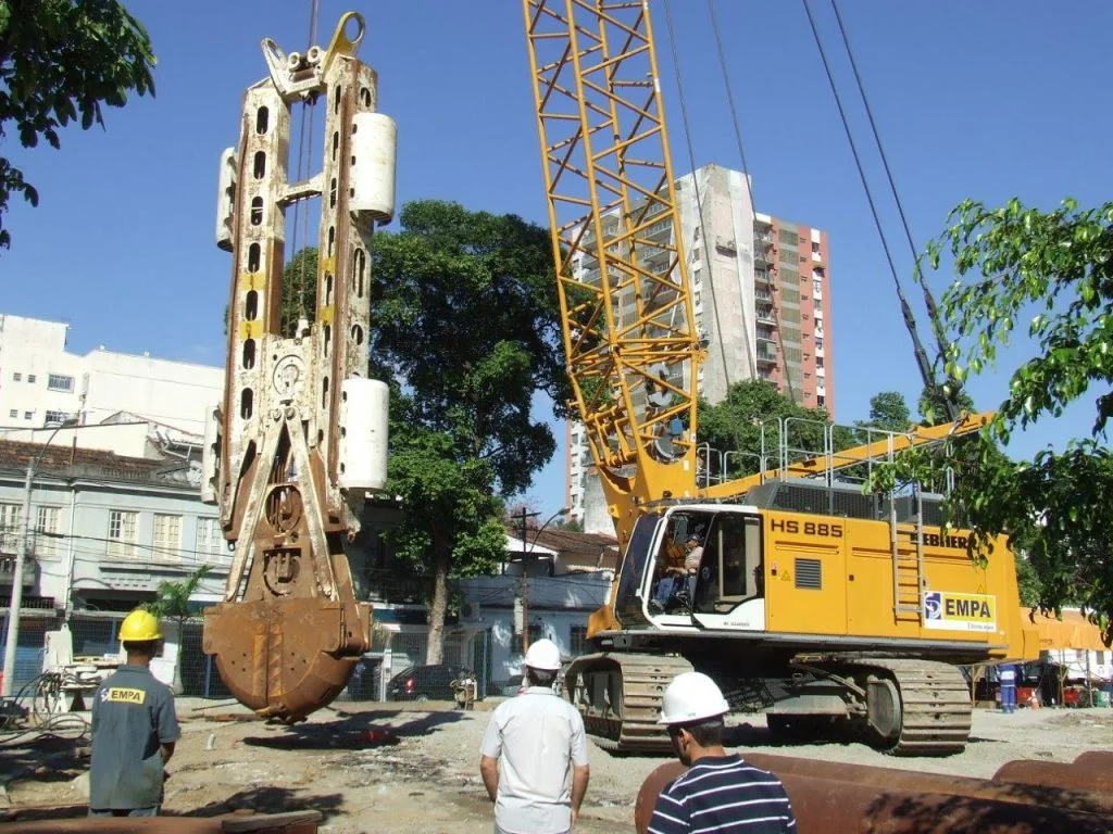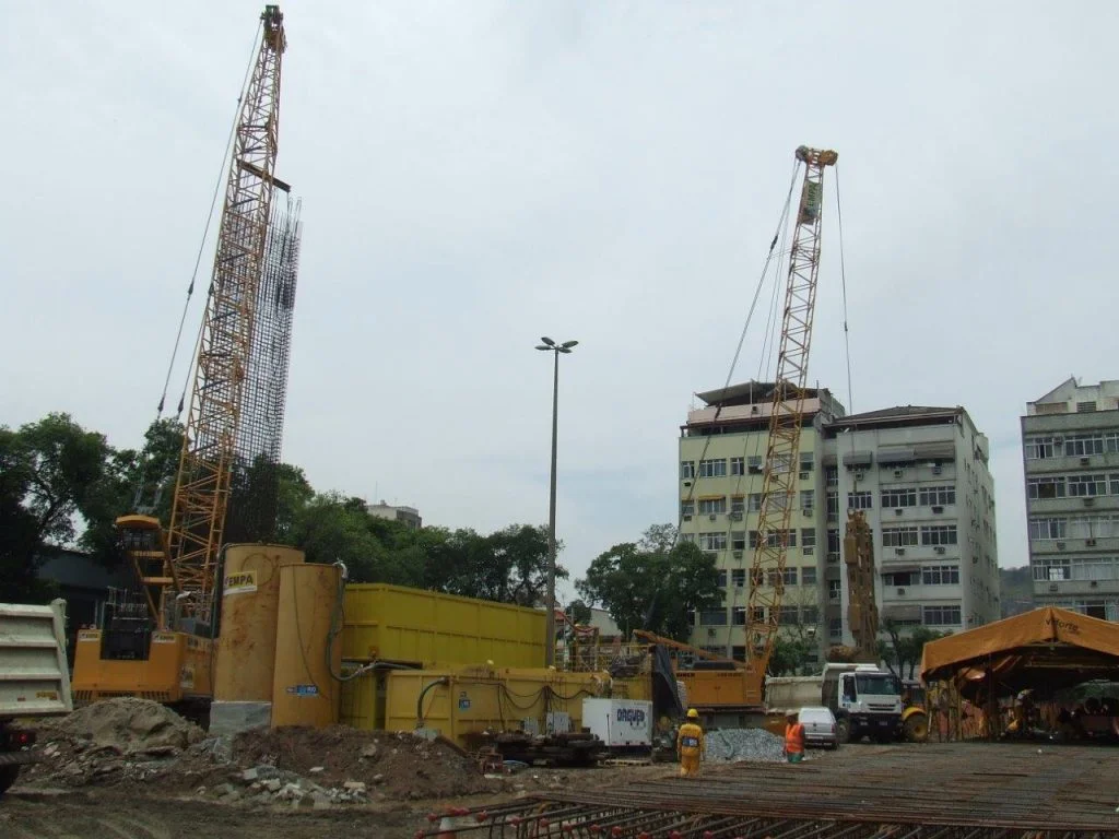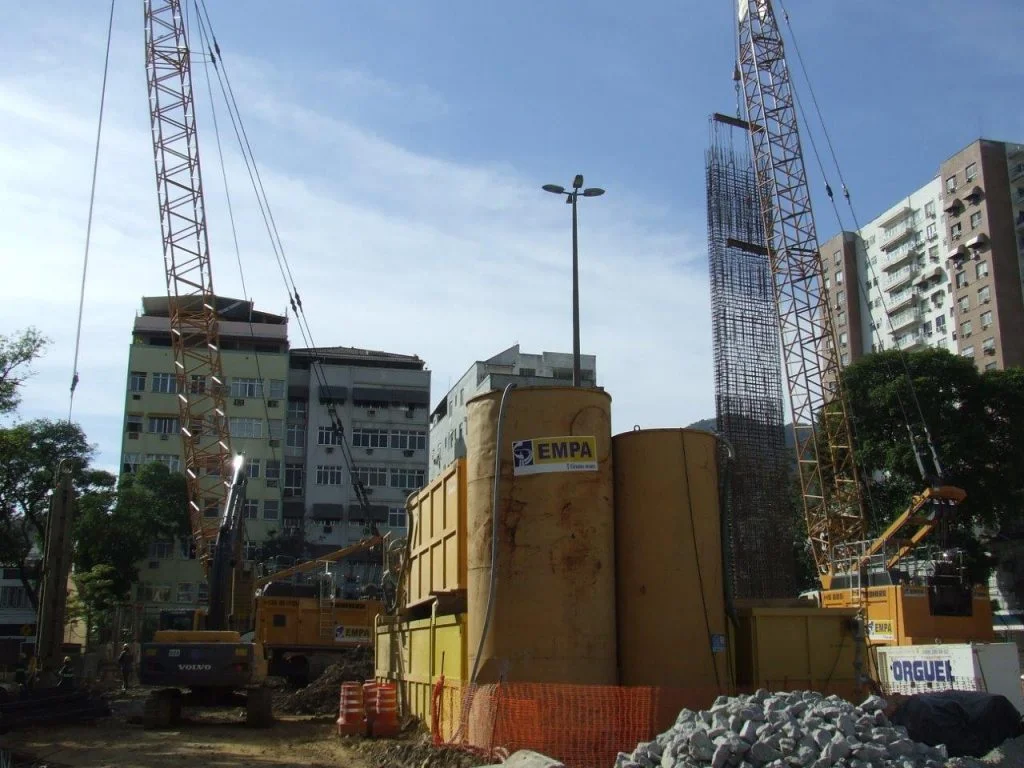 Execução da contenção periférica de 3 reservatórios enterrados com parede diafragma.