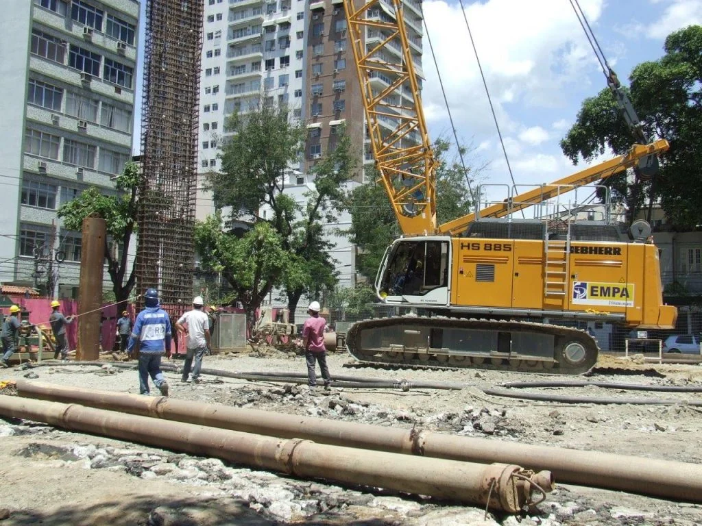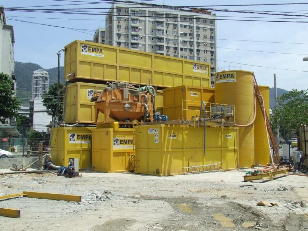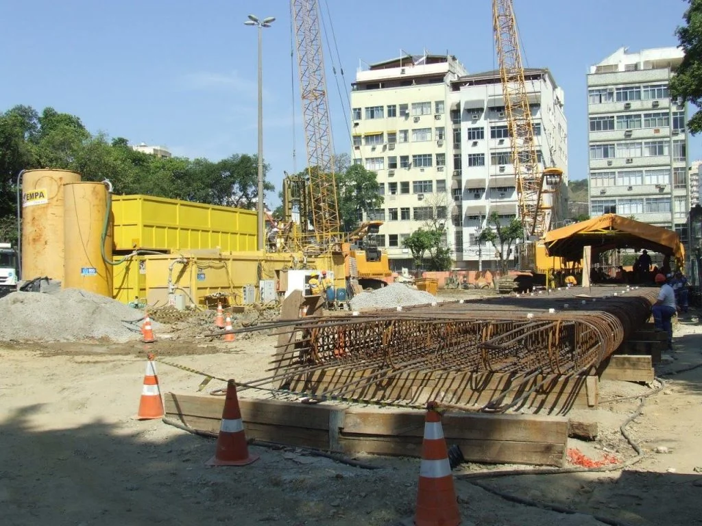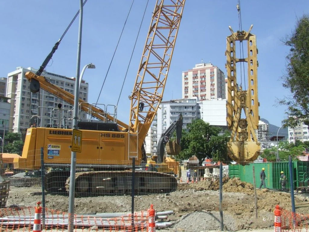 Execução da contenção periférica de 3 reservatórios enterrados com parede diafragma.