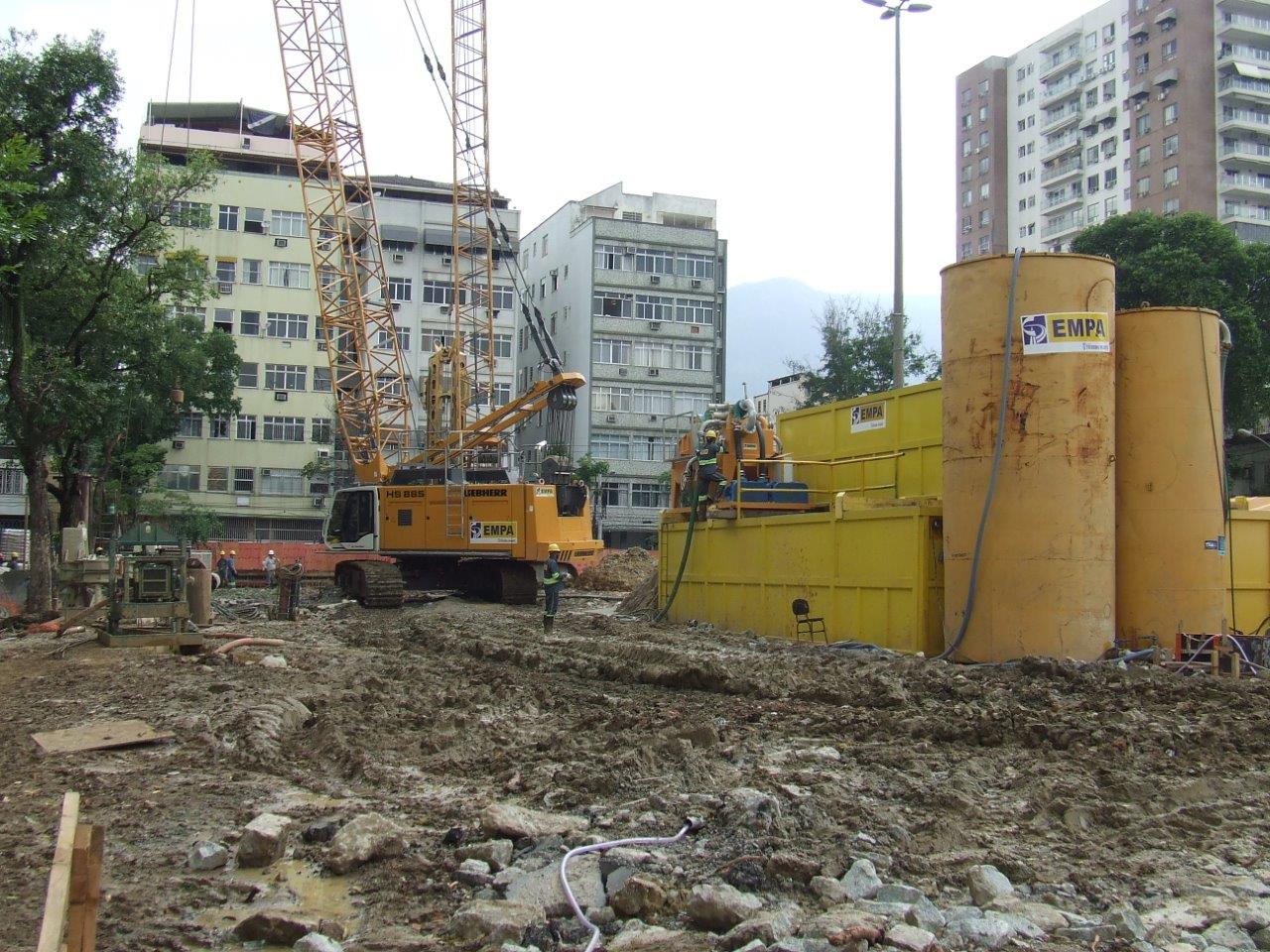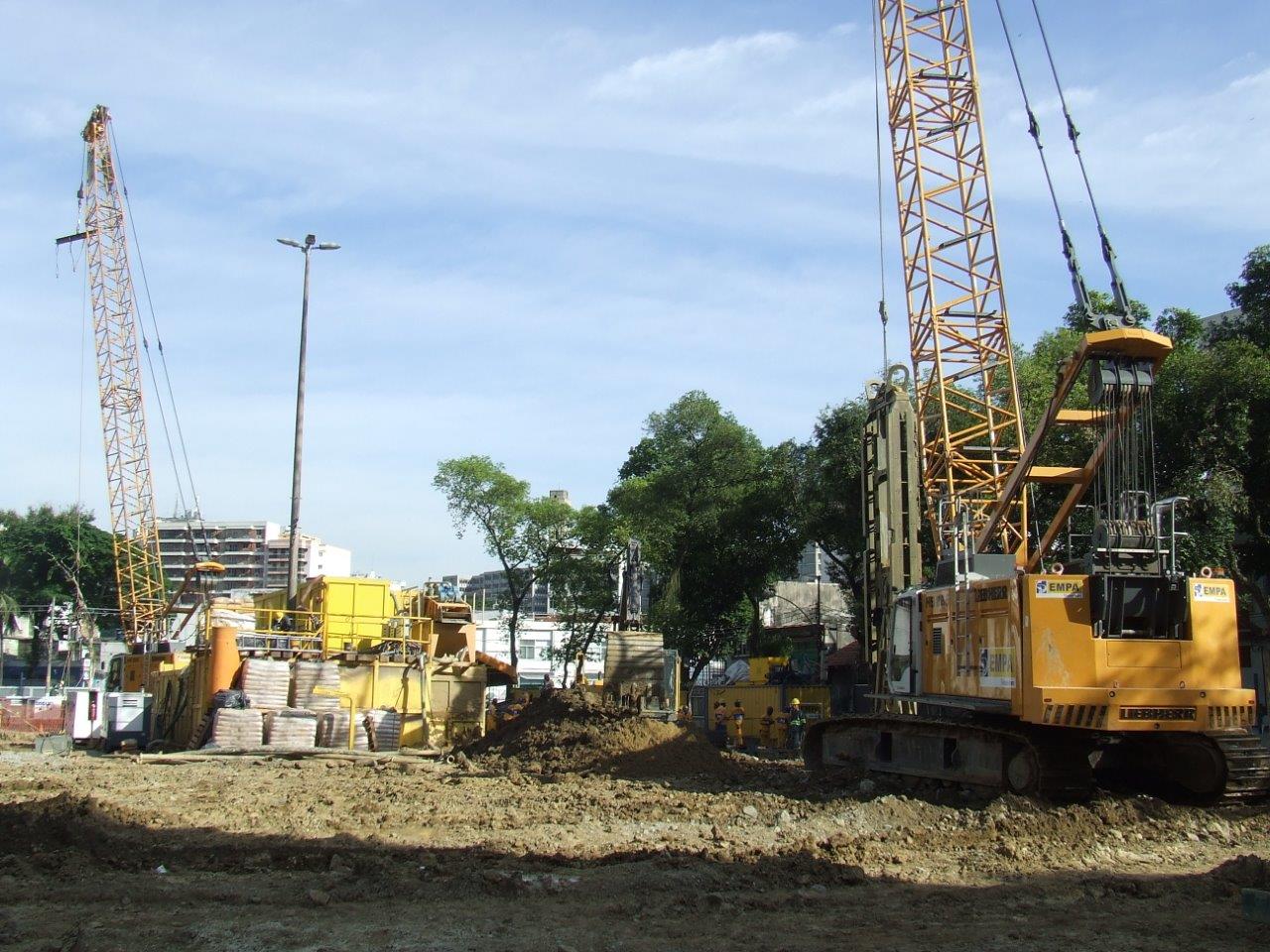 Execução da contenção periférica de 3 reservatórios enterrados com parede diafragma.