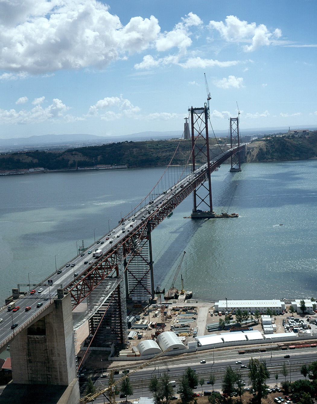 – Reforço estrutural da ponte que inclui a construção de dois cabos de suspensão secundários paralelos aos existentes, cerca de 3,5 metros acima dele, reforço da viga de rigidez, e construção das novas ancoragens exteriores, adjacentes às actuais na Av. da Índia e na encosta do monumento do Cristo-Rei, esta na margem esquerda do Rio Tejo.