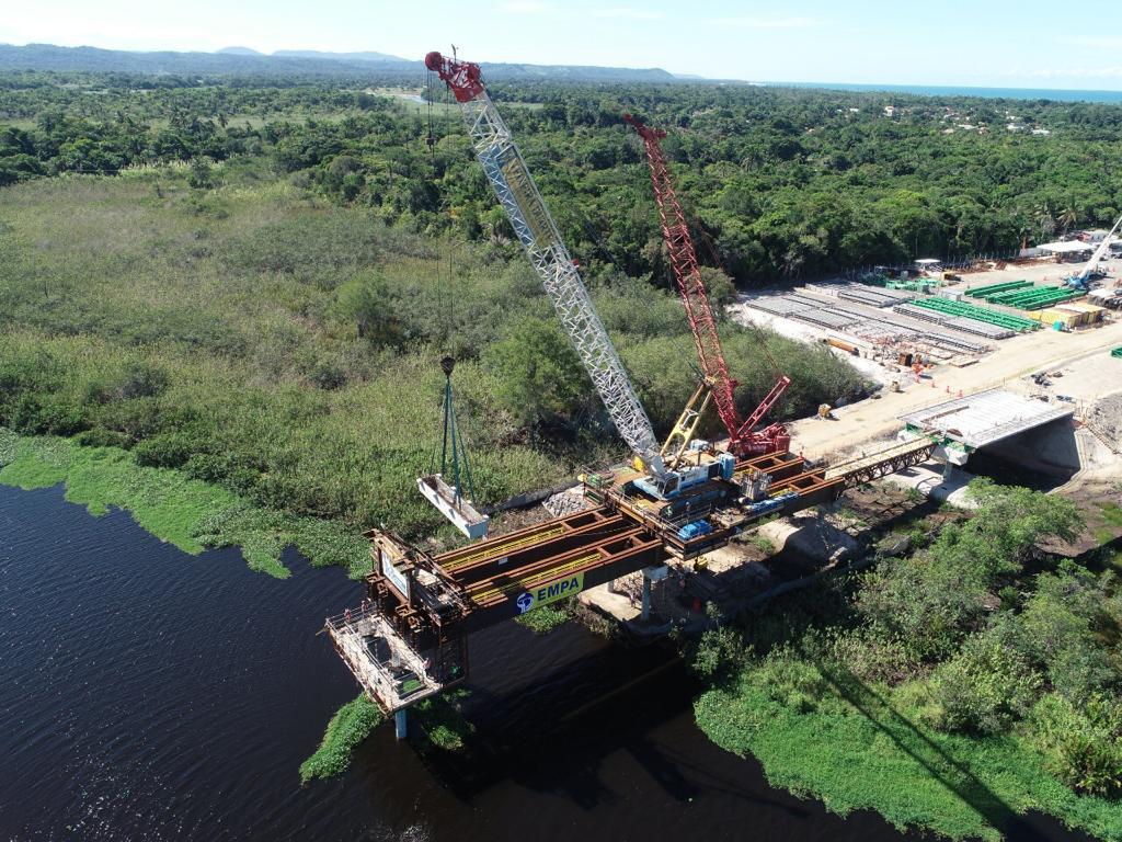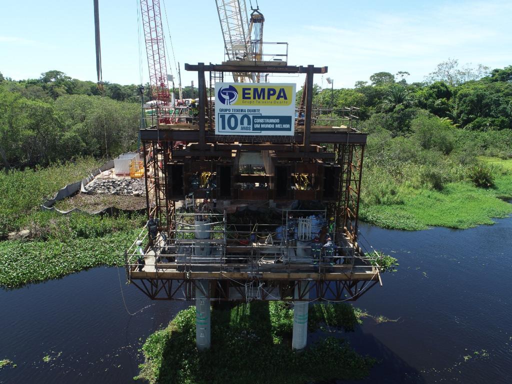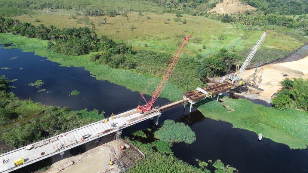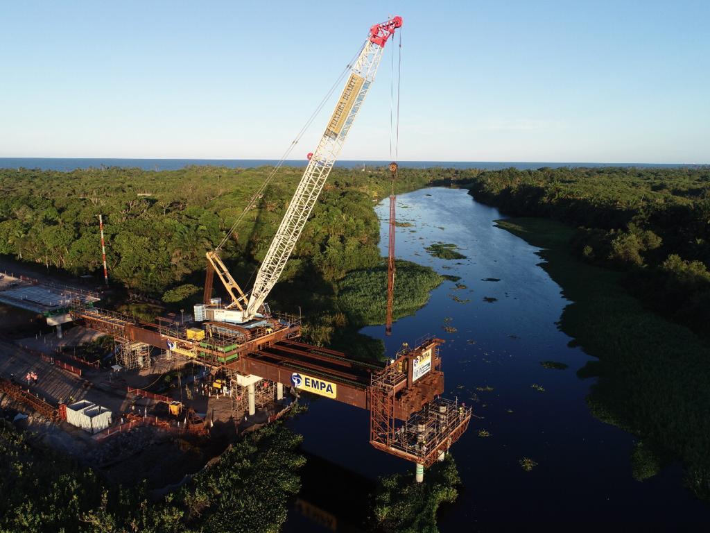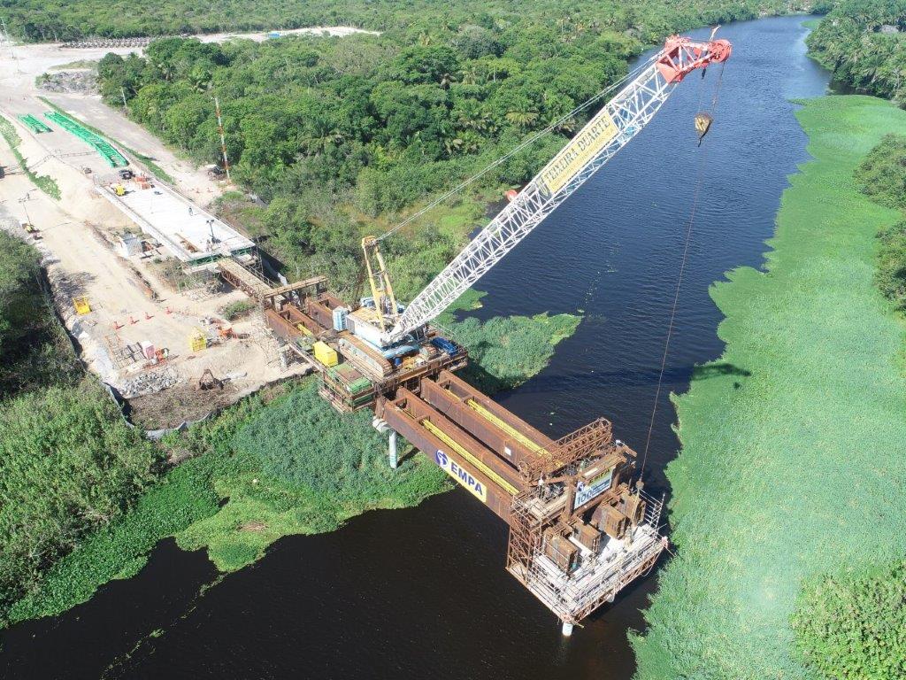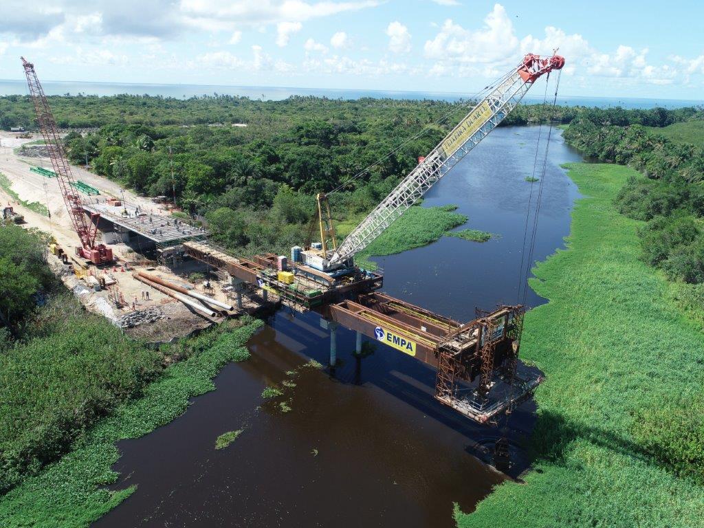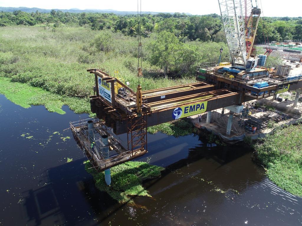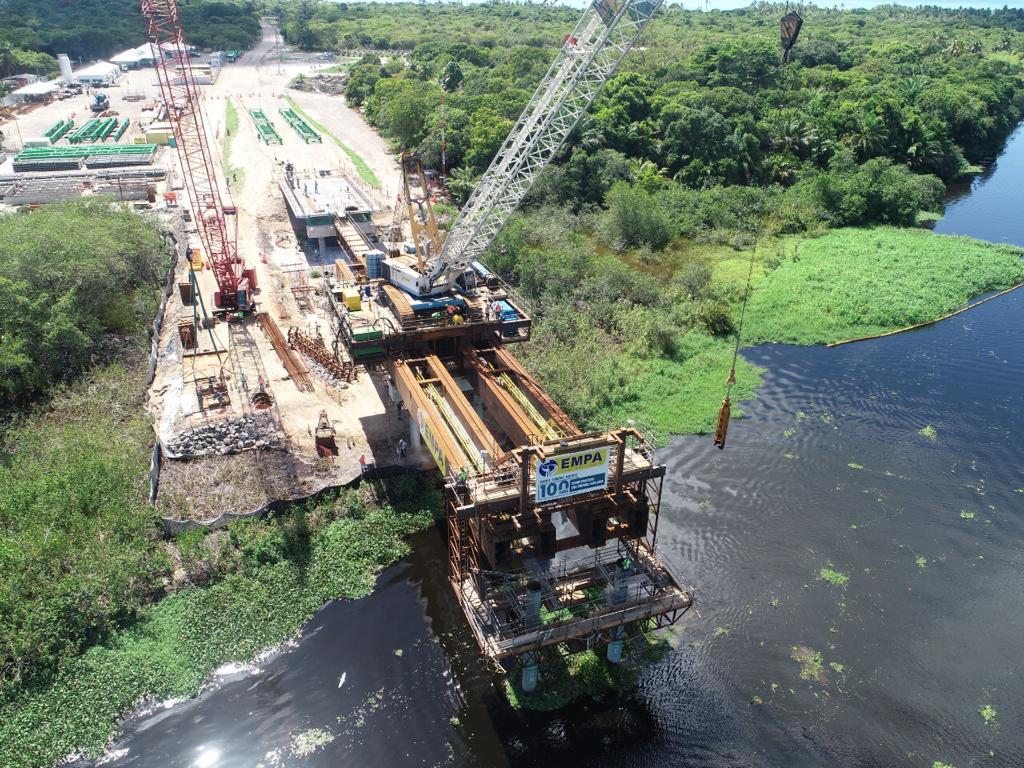 Serviços para execução dos acessos administrativo e industrial, ponte rodoviária sobre o rio Almada e caminhos de serviço do terminal portuário de Aritaguá (TPA). Construção da ponte sobre o rio Almada, com aproximadamente 237 metros de comprimento e 11,80 metros de largura, através do sistema Cantitraveller. com vão único em console de 26,40m.