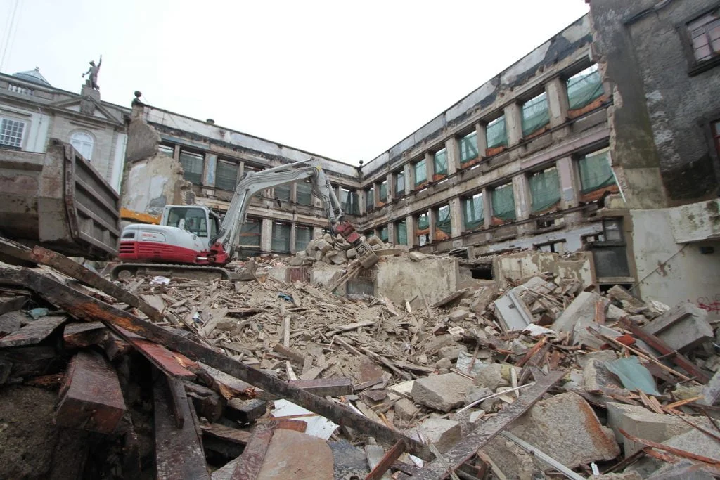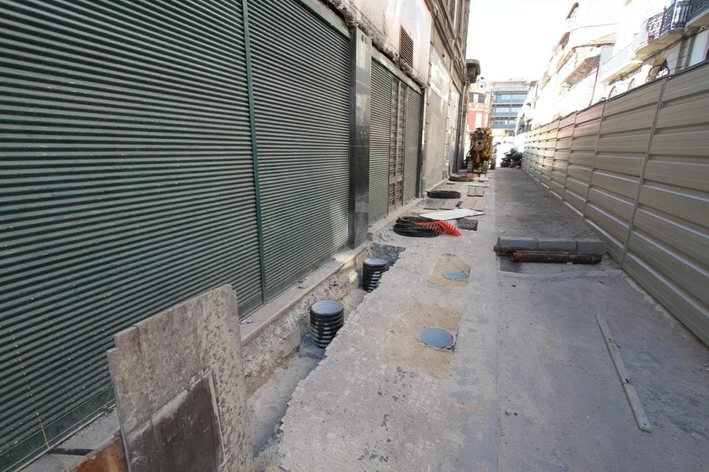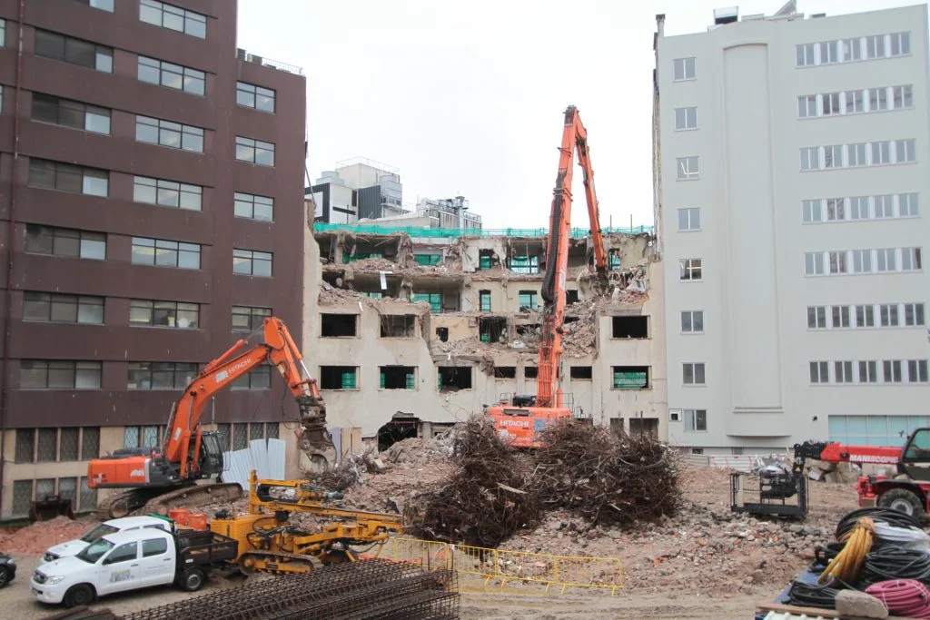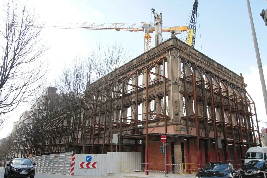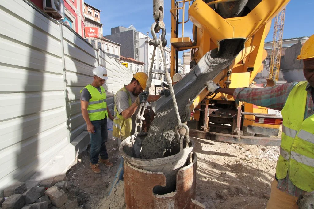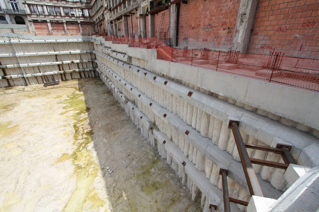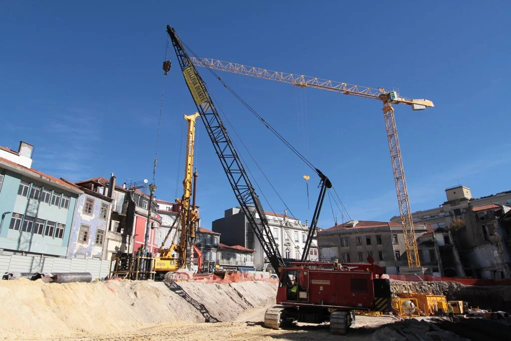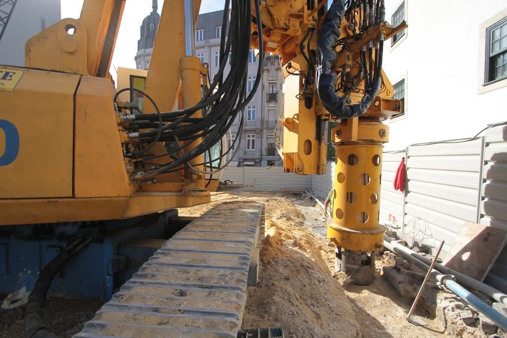 demolição do edifício LOOP e Edificado na Rua Sá da Bandeira (? 15.000 m3 RCDs), contenção de fachadas, escavação e contenção periférica por cortina de estacas secantes de Ø 600mm.
