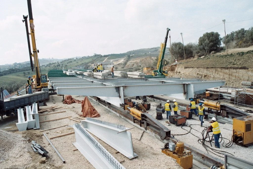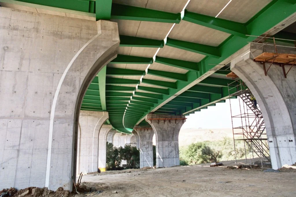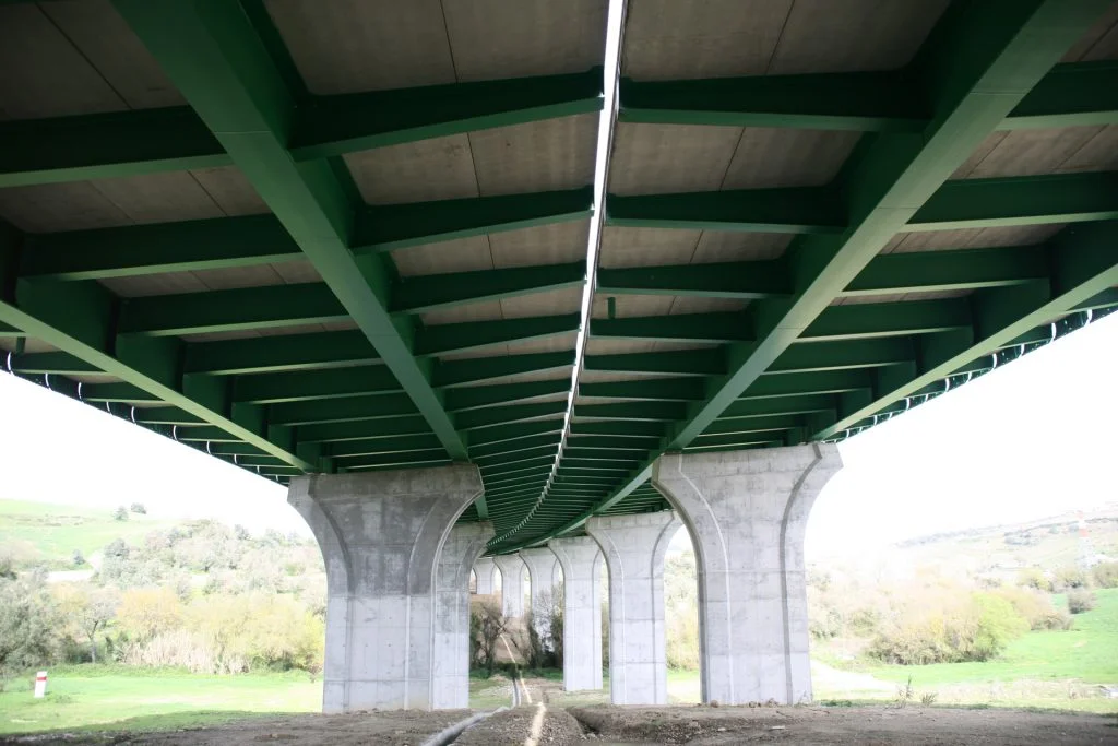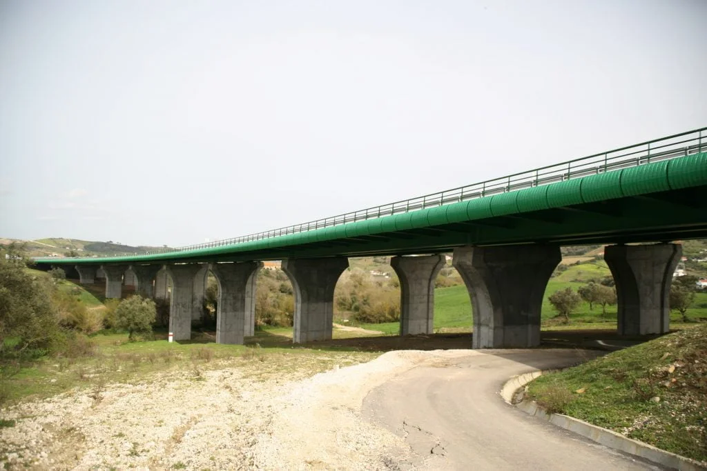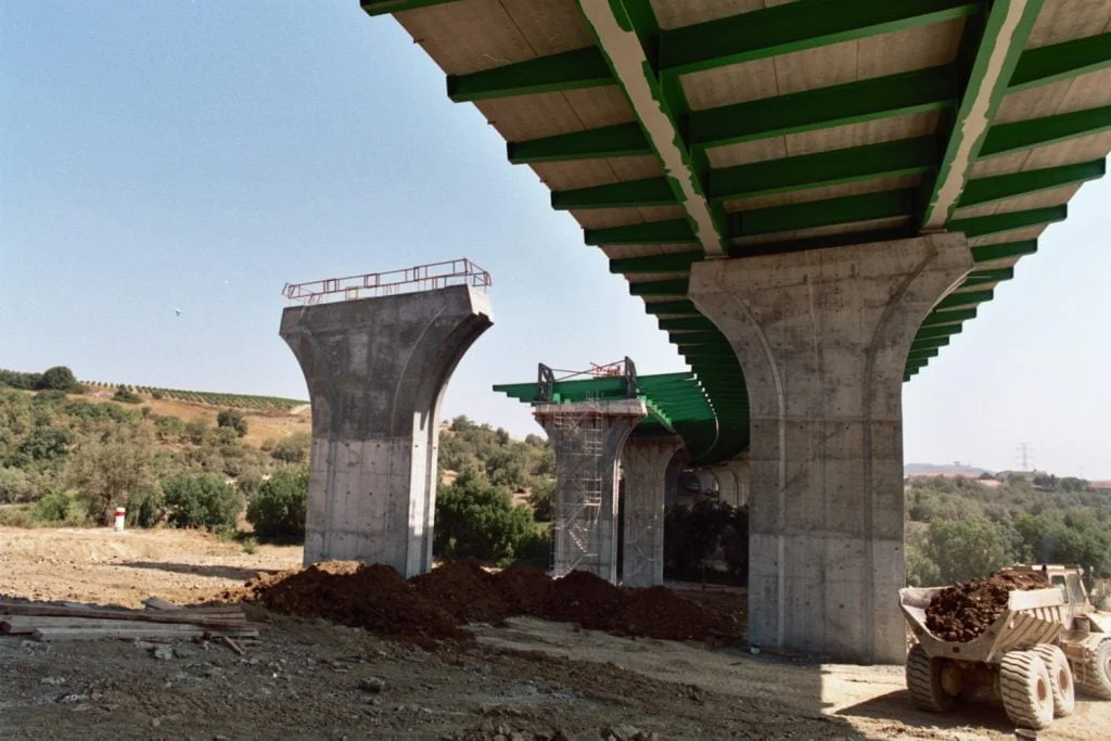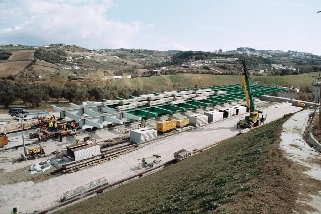 Construção do Viaduto de São Sebastião, na Rodovia A10 – Bucelas/Carregado/IP3, em Arruda dos VInhos, Portugal. Viaduto com dois tabuleiros, cada um constituído por um vão extremo com 28 metros, sete com 36 metros e o outro extremo também com 28 metros, totalizando 308 metros de comprimento, apoiado em oito pilares e dois encontros.
