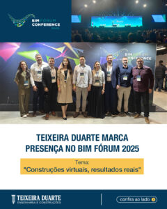 Associada ao BIM Fórum Brasil e à buildingSMART, a Teixeira Duarte reafirma seu compromisso com a inovação, o desenvolvimento técnico e o aprimoramento contínuo de seus processos, pessoas e tecnologias.