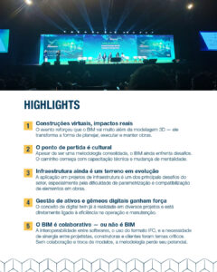 Dentre os temas mais debatidos, destacaram-se a integração de gêmeos digitais à gestão de ativos, os incentivos públicos regionais para adoção da metodologia e o papel crescente da inteligência artificial na otimização e precisão dos modelos.