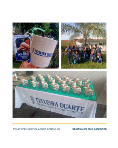 Em 2025, alinhada ao tema proposto pela ONU para o Dia Mundial do Meio Ambiente — focado na redução da poluição plástica —, a Teixeira Duarte intensificou suas iniciativas voltadas à conscientização ambiental e à mudança de hábitos nos canteiros de obras. Uma das principais ações foi a substituição dos copos descartáveis por alternativas reutilizáveis. Para isso, foram confeccionados e distribuídos copos e garrafas duráveis aos empregados, promovendo o uso consciente de materiais e incentivando a adoção de práticas mais sustentáveis no dia a dia das equipes.